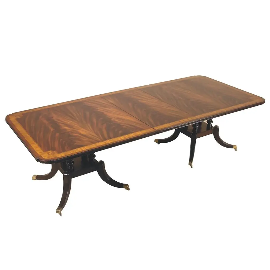 Mahogany Finished Crotch Mahogany Veneer Dining Table Crossbanding Top Brass Mounts