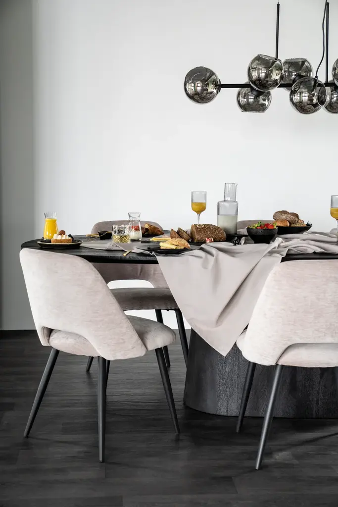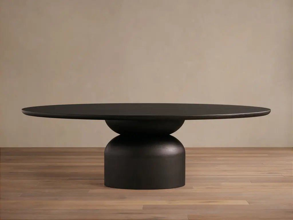 The Aron Dining Table by Eleonora becomes the heart of your home, offering a perfect setting for memorable gatherings and meals. Crafted from mango wood in a rich black hue, this table exudes warmth and coziness. Its oval tabletop, supported by a single central base, creates an intimate and delightful atmosphere, perfect for shared meals and cherished moments.