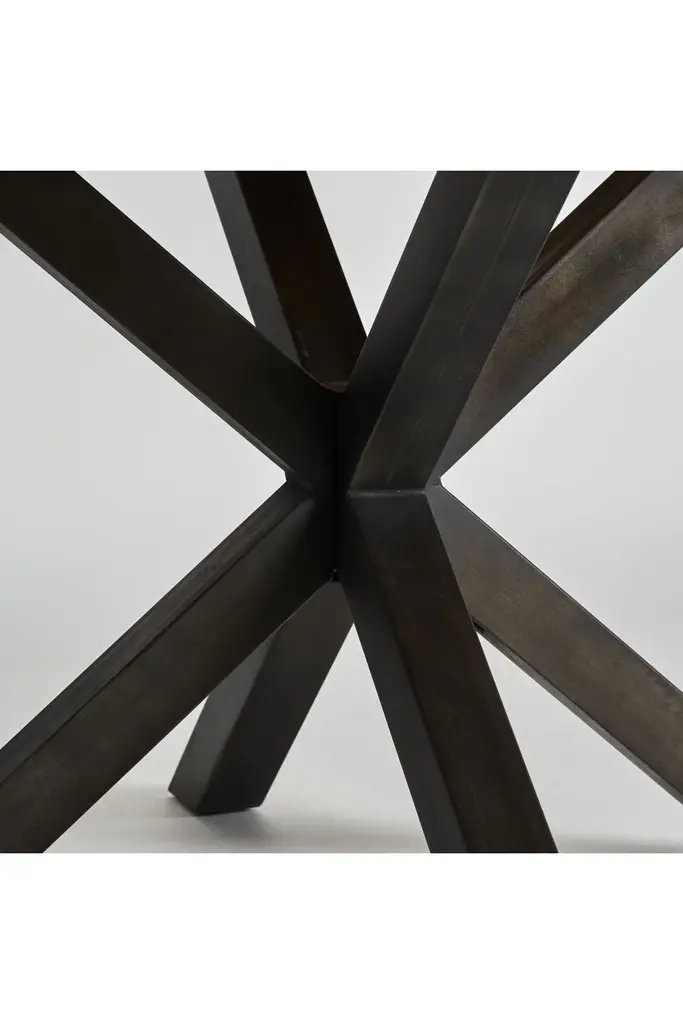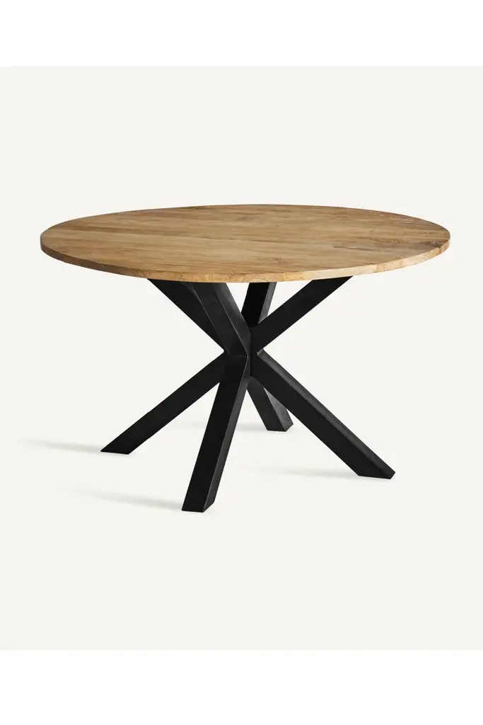 The Viborg Dining Table by Vical Home is a statement of design and functionality. Measuring this round, three-leg cross dining table features three crossed legs that provide stability and style. Made from mango wood in a black/natural shade, it is perfect for intimate and elegant gatherings.