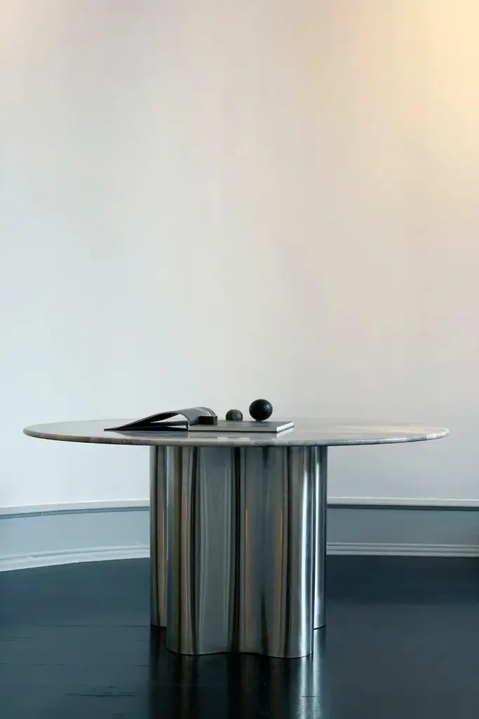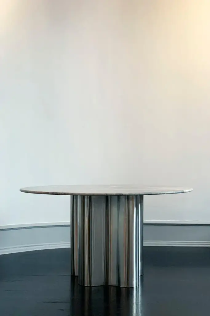 Marble dining table by Caia Leifsdotter Materials: Marble Fioro di Bosco Dimensions: Ø 140 cm Height with marble: 72cm Also available in Ø 160 cm The design studio of Caia Leifsdotter designs bespoke objects for clients & projects. A bespoke object is a unique piece of personality added to a space. with a clear vision & sublime materials, the dream of the client can be objectified gracefully through the bespoke object. The design studio of Caia Leifsdotter creates atmospheric spaces that enhance the contemporary interior with a vintage flair - to create embracing and inspiring spaces. with a creative approach to design, Caia Leifsdotter combines functionality and aesthetic spaces with respect for the historical and architectural framework. Caia Leifsdotter’s Scandinavian heritage is reflected in her sense of style with minimalistic shapes combined with the use of colors adding a touch of freshness and originality.