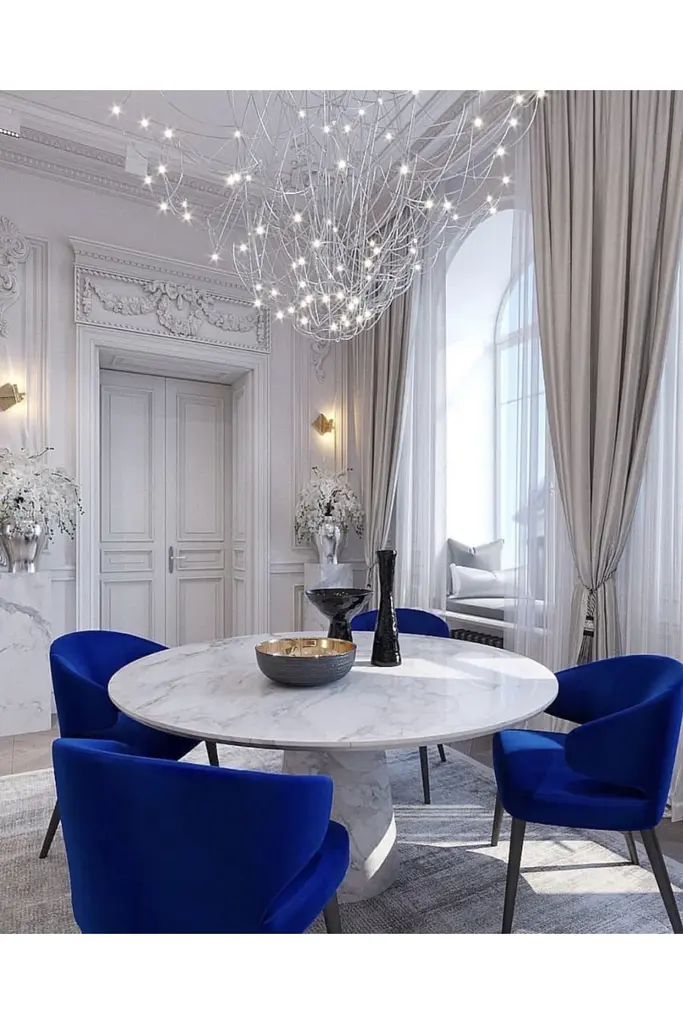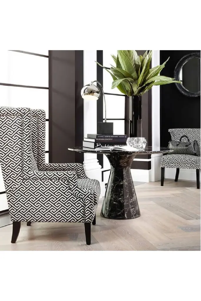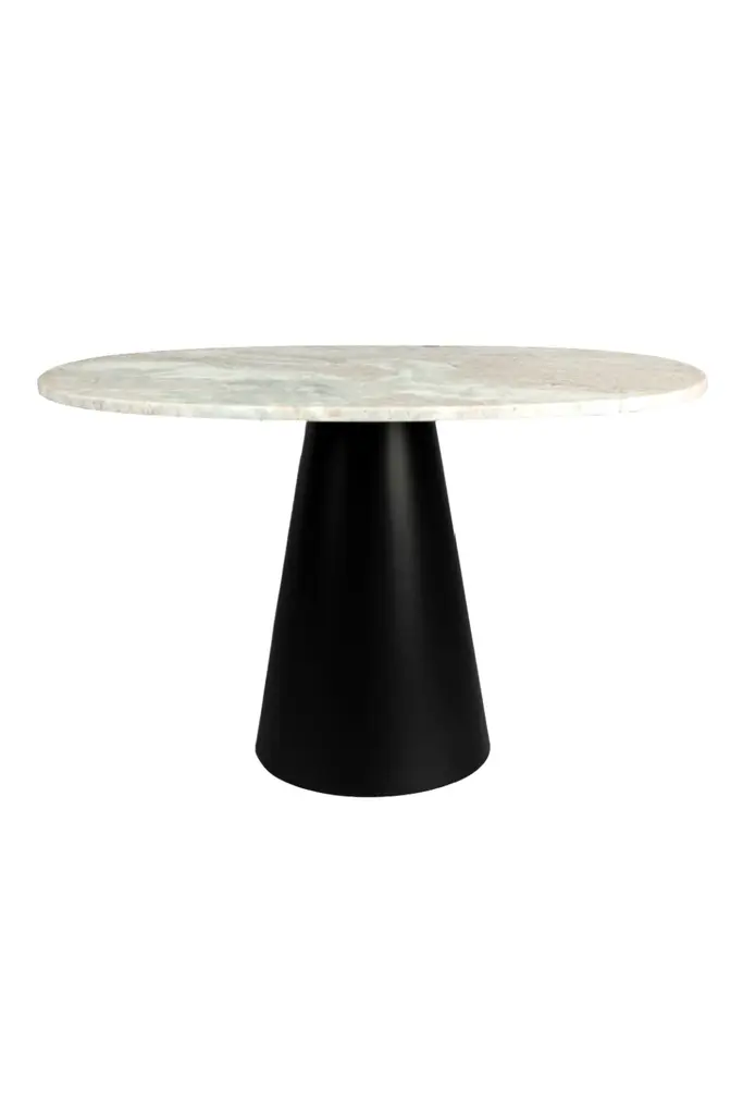 The remarkable Turner Dining Table is crafted from marble and features characteristic swirls and veins. Dine with your guests in style with this luxurious dining room piece. This dining table will accommodate four chairs for dining.
