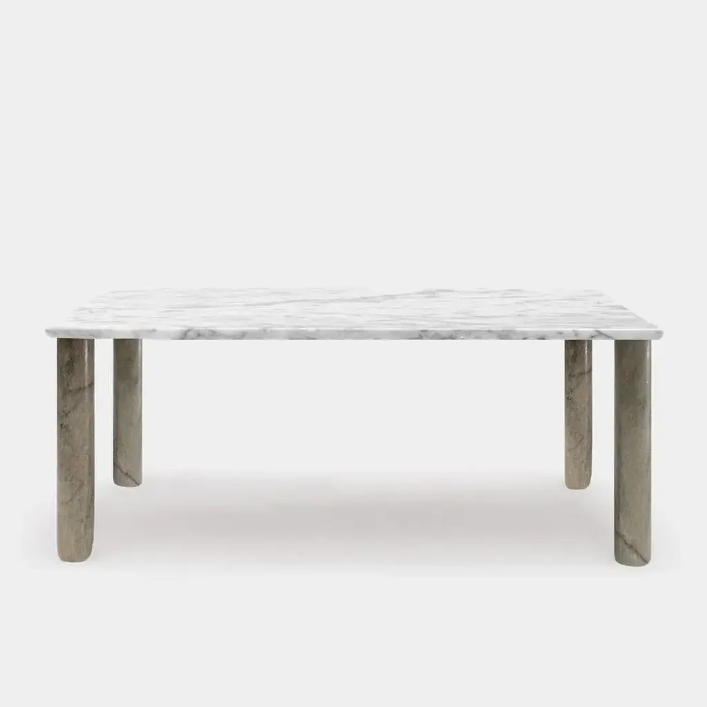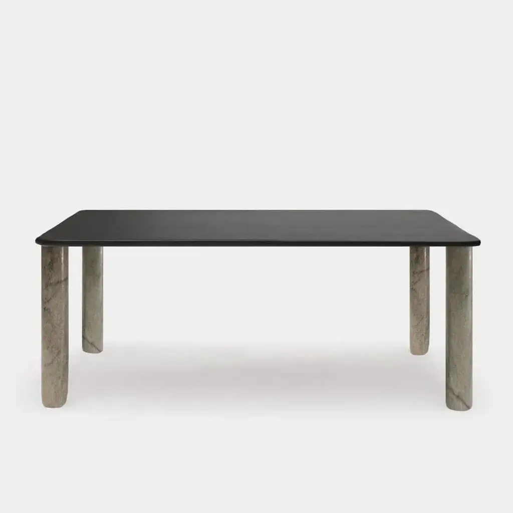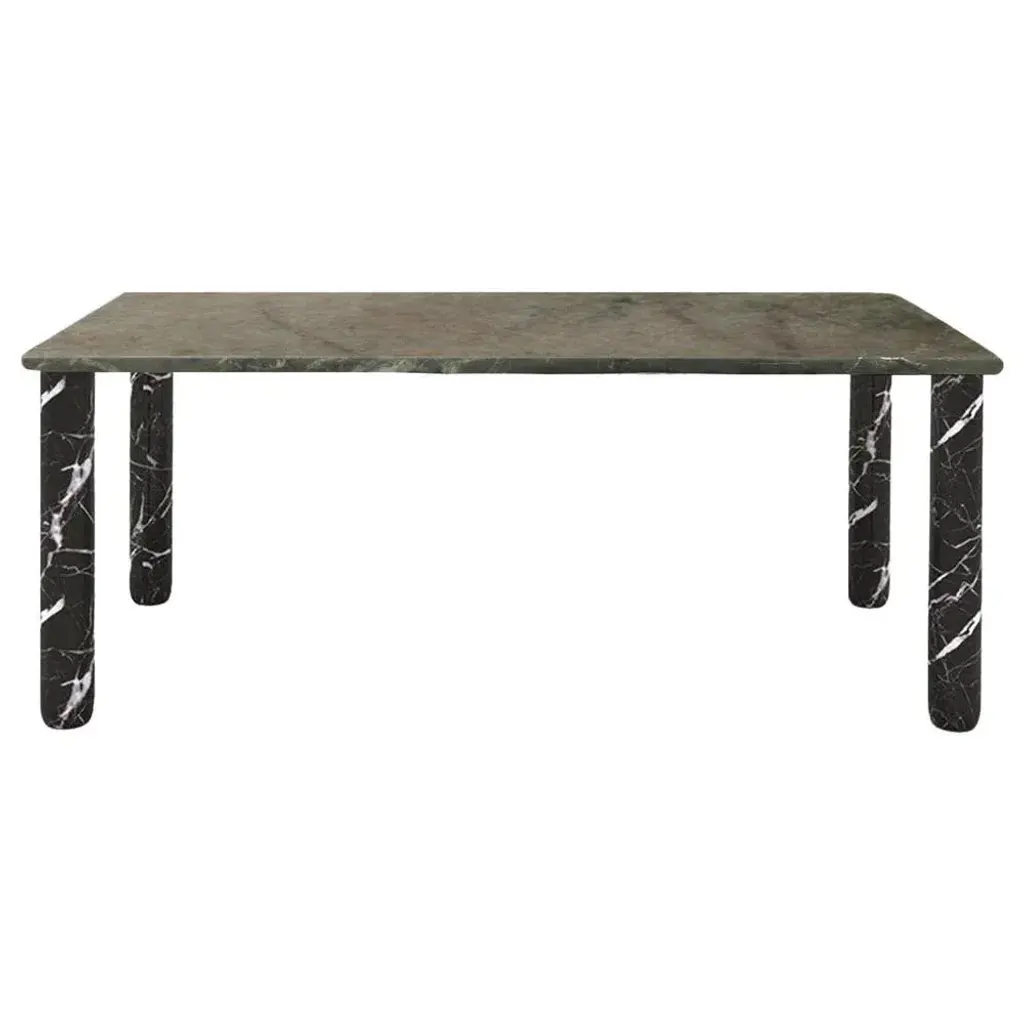 Marble "Sunday" dining table, Jean-Baptiste Souletie. Dimensions: 200 W x 100 D x 74.5 H cm. Materials: marble Different finishes and sizes are available Sunday is a family of dinner tables, coffee tables and consoles with a simple and sculptural design. The mix of heavy marble legs and a thin solid wood top creates an interesting contrast while the rounded edges and generous proportions provide a comforting feeling. Sunday is all about the materials: 3 marbles and 2 woods are available in the collection. Sunday comes in a wide variety of dimensions and 2 different marble legs heights to perfectly fit your interior whether you need a small coffee table, a large one, a console, or even a dinner table that will seat 10 guests on a friendly Sunday lunch. Jean-Baptiste Souletie is the Co-founder of the furniture editor La Chance with Louise Breguet. He studied in India, worked for a merchant bank in London (where he designed their new offices), before working for an investment fund (where he redevised the graphic chart), and in the strategic department of a luxury goods company in Paris. He returned to his first loves, architecture and furniture, when he founded La Chance in 2012.