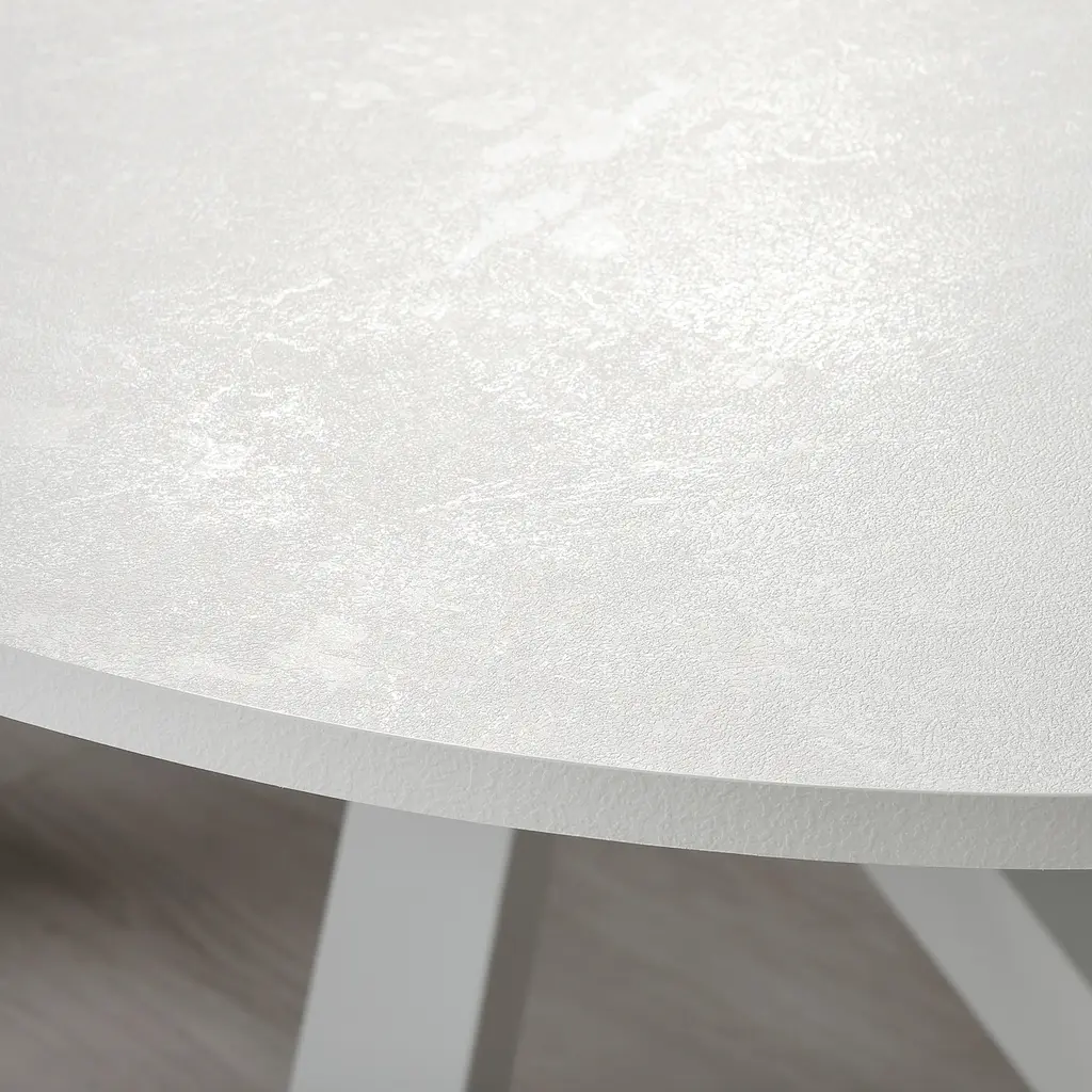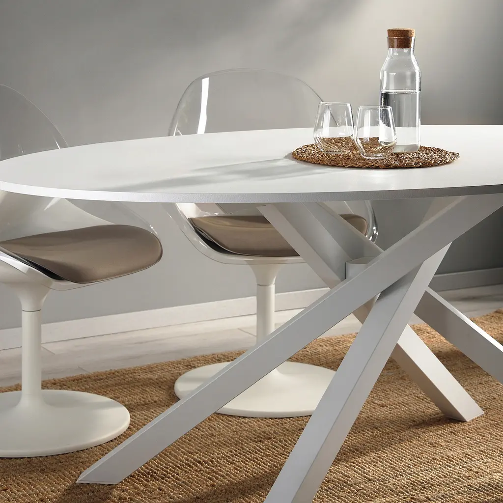 MARIEDAMM Table - white/stone effect white 70 7/8x39 3/8 ". The oval shape with soft edges adds a relaxed feel to the room. The matte surface has outstanding anti-fingerprint and water-repellent qualities. The powder-coated steel frame is both sturdy and durable. Seats 4-6.