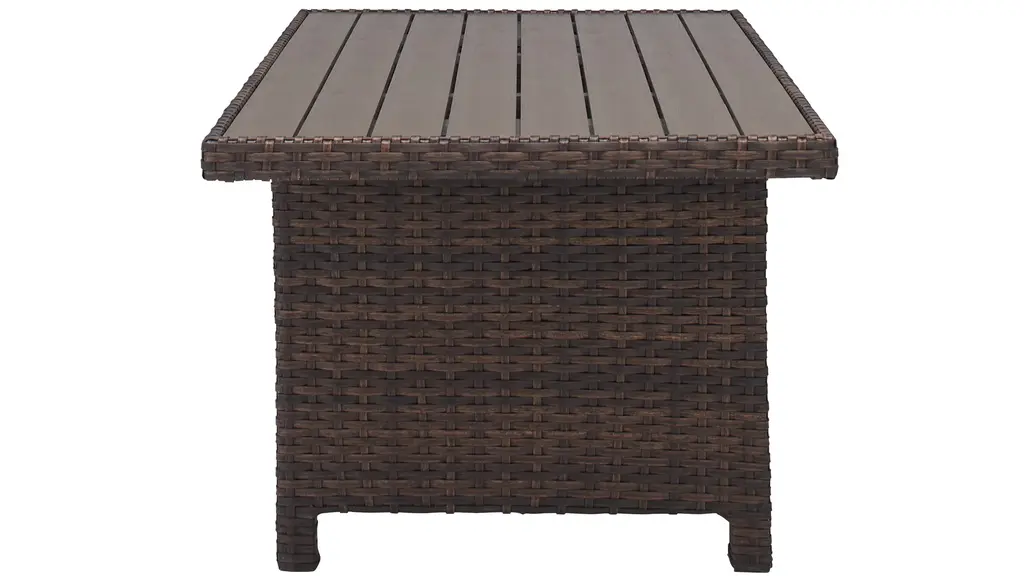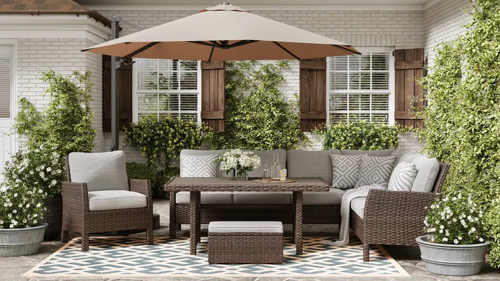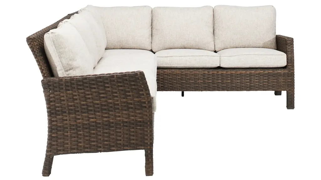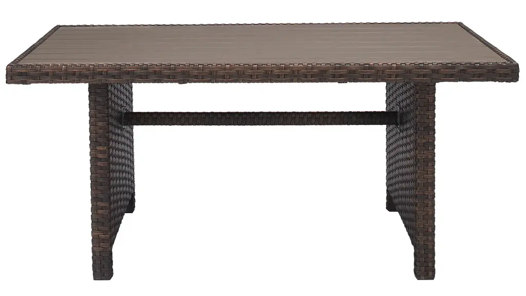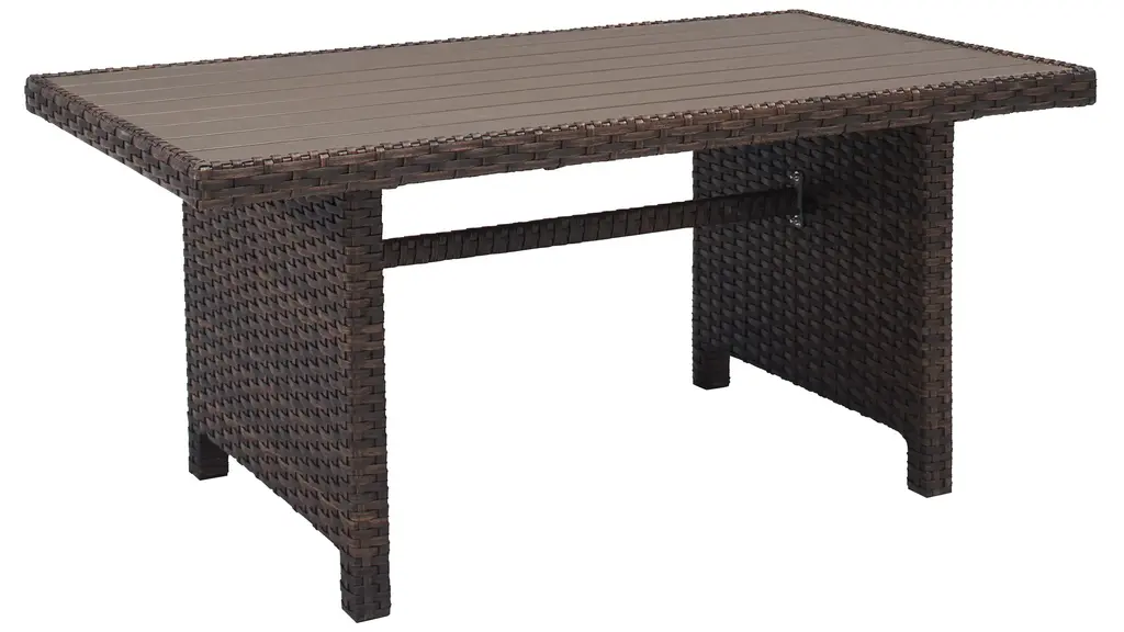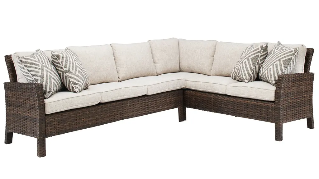 Your favorite lounging spot inside meets its match outdoors with the Marin outdoor set including the 2-pc. sectional, dining table, chair, and storage ottoman! Indulge in the character and style of all the perfect pieces for alfresco conversations, casual meals, and more. Resin wicker over rust-free aluminum frames offer an upscale vibe that endures, while block feet and slim track arms play nicely in contemporary settings.