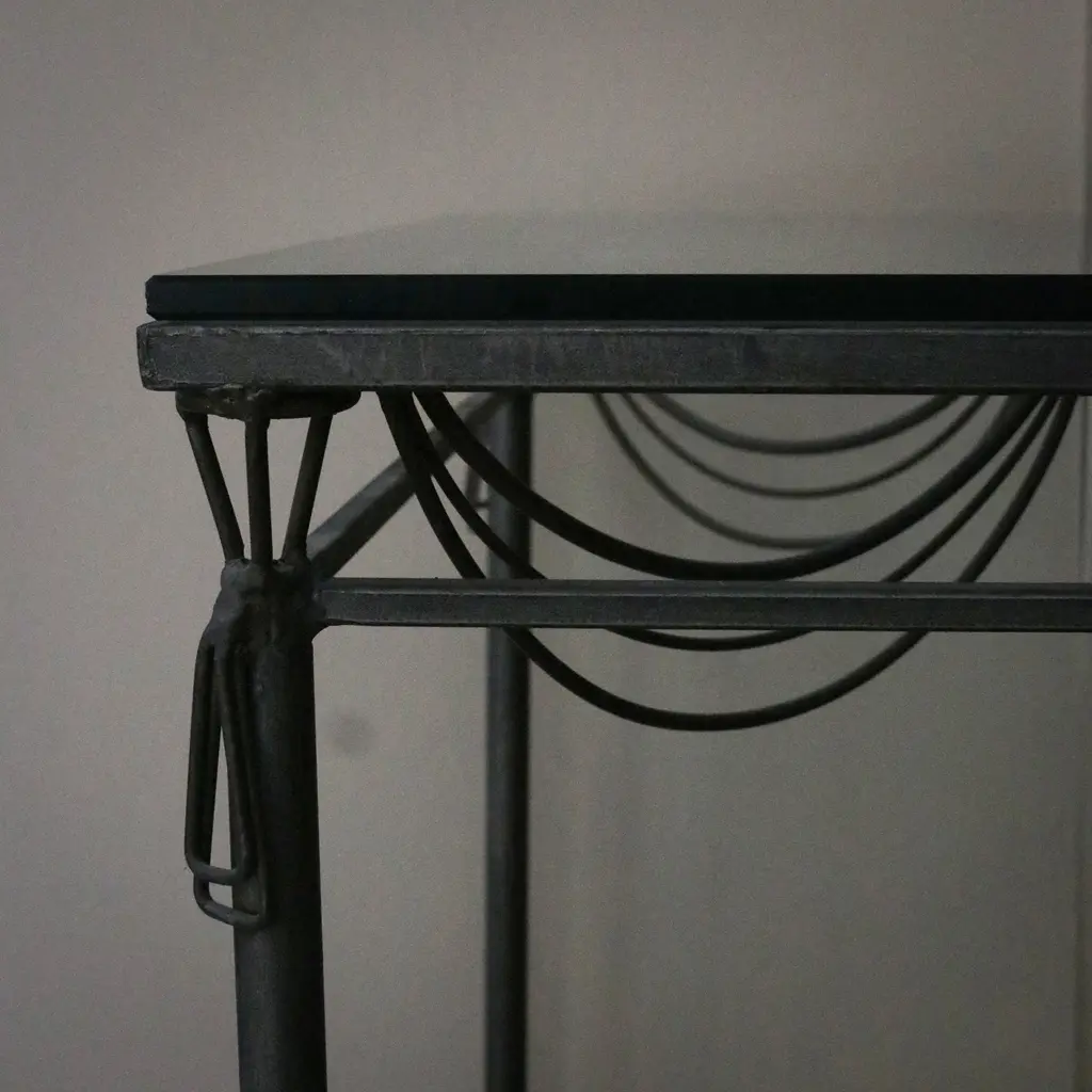 This elegant table by Mario Villa, the late Nicaraguan-born artist and designer, exemplifies his signature fusion of classical ornamentation with industrial craftsmanship. After relocating to New Orleans, Villa became a prominent figure in the local arts scene, celebrated for his sculptural furniture and expressive ironwork that blurs the line between function and fine art.