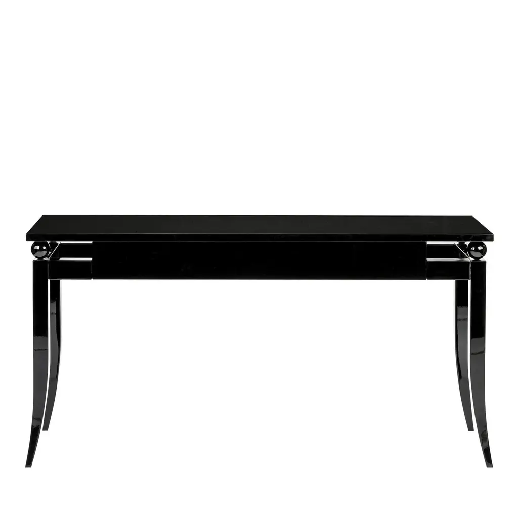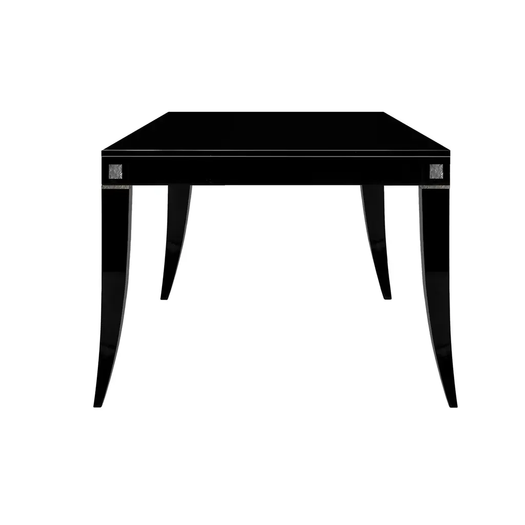 This table with its minimalist look has a modern design with a timeless elegance. Its rectangular top is supported by four elegantly curved legs, all finished with a matte black lacquer.