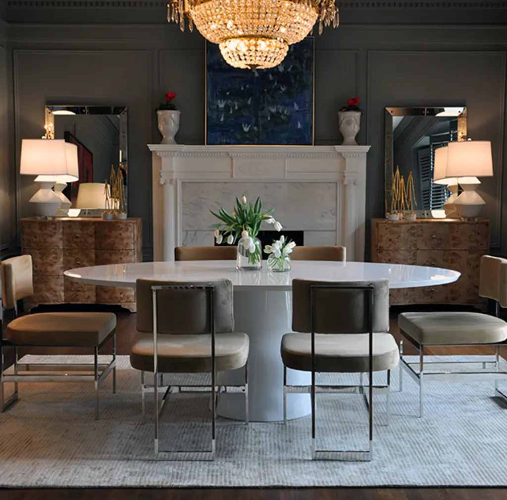 New Special Order Item. Our Jefferson oval dining table makes the most of its classic, minimalist silhouette. Its tapered base has a stately presence, and glossy white lacquer finish adds visual depth and modern appeal. Designed to seamlessly blend timeless style with contemporary charm, it’s perfect for both intimate gatherings and festive celebrations. The Jefferson brings a refined touch to your home, making every meal a special occasion. With an 86-inch wide, reverse-beveled top, the Jefferson comfortably seats six to eight guests. TOP THICKNESS: 1.5" H CLEARANCE: APPROXIMATELY 28.5" H AT EDGE 86" W X 30" H X 48" D *TWO PERSON ASSEMBLY REQUIRED. INSTRUCTIONS PROVIDED. Width:86.00" Height:30.00" Depth:48.00"