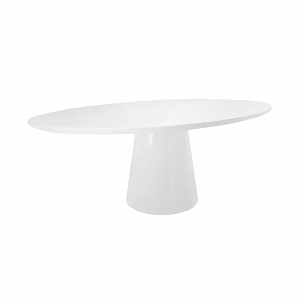 Matthew Izzo Home - Jefferson 86" Oval Glossy White Lacquer Pedestal Dining Table