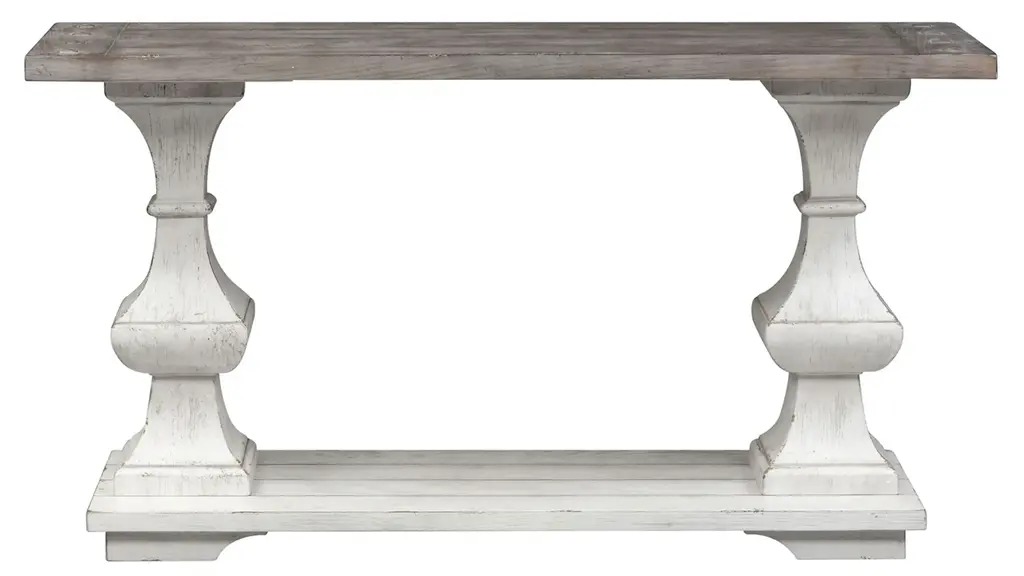 New item. Not vintage. With its round-shaped decorative legs, the Luna Dining Table is both charming and durable. Hand-constructed of salvaged pine wood, the Luna Dining Table has a white-wash finish that is weathered to deliberately leave exposed sections of pine. This vintage-inspired dining table can seat up to eight, but six is most comfortable. Assembly required, hardware provided. GENERAL DIMENSIONS: 96'' x 40'' x 30''