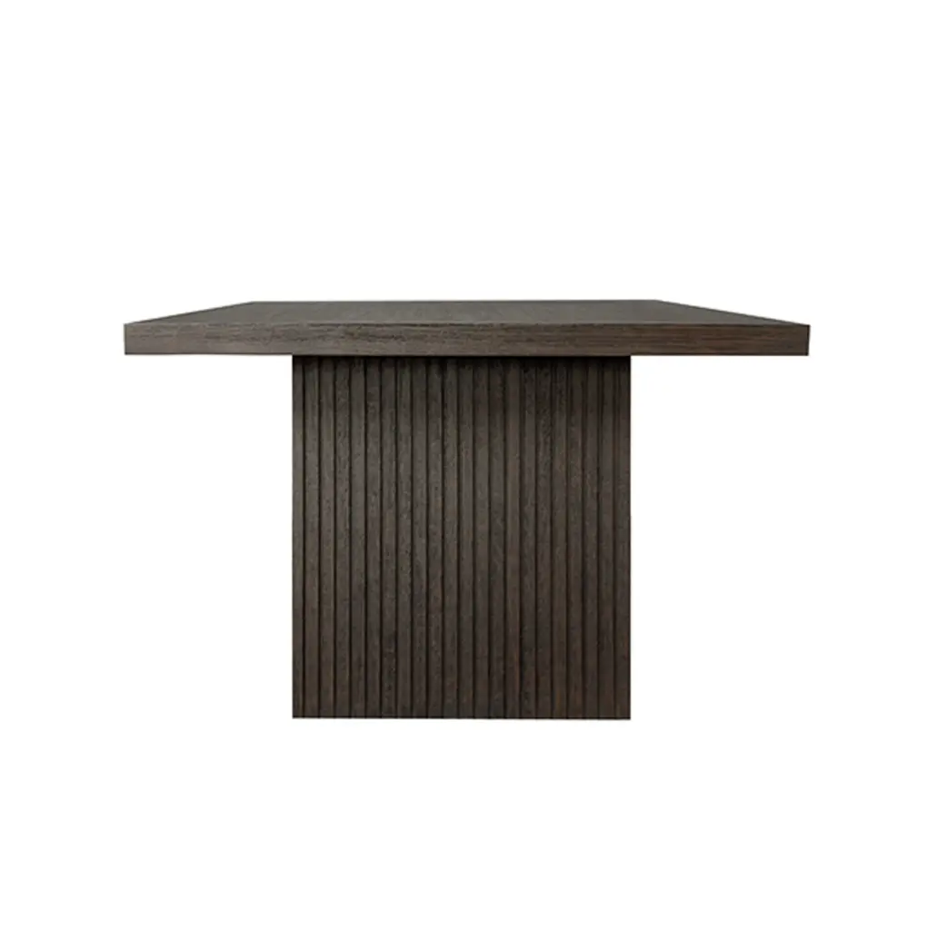 New Special Order Item. Meet the remarkable Patterson plank style slatted dining table base in the dark espresso oak finish. Crafted from high-quality oak, this table boasts a striking organic look that perfectly complements any interior style. As a natural material, oak has unique variations in its tone and grain patterns, which means every piece of furniture is entirely one-of-a-kind. The Patterson will transform your dining space into a stylish sanctuary. CLEARANCE: 27" H 86" W X 29" H X 42" D *TWO PERSON ASSEMBLY REQUIRED. INSTRUCTIONS PROVIDED. WHITE GLOVE SHIPPING CHARGES MAY APPLY. Width:86.00" Height:29.00" Depth:42.00"
