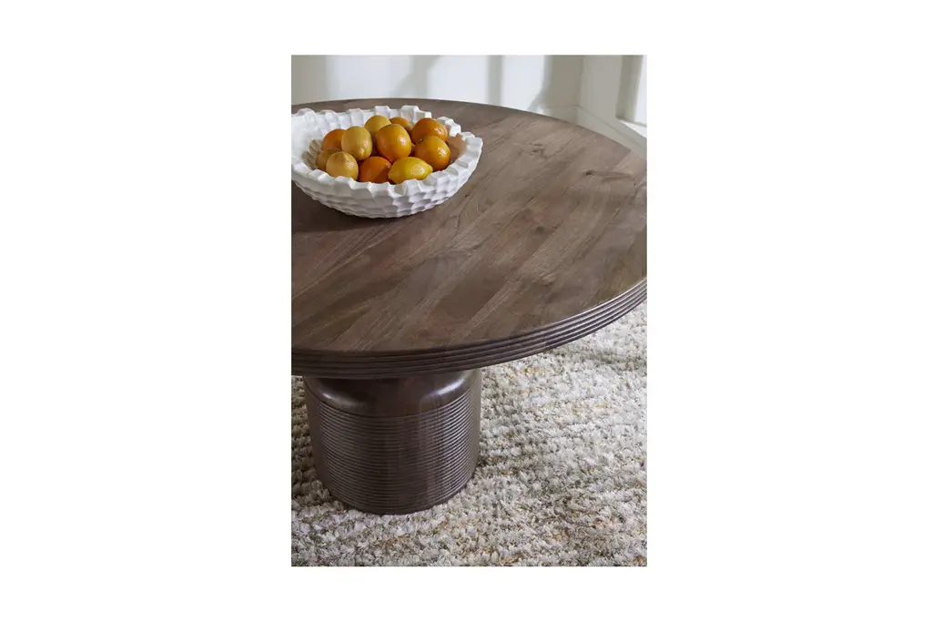 Elevate your dining experience with the Maude Dining Table. Meticulously fashioned from durable solid mango wood, this stylish centerpiece features a rich, natural finish that allows the wood's intricate grain to shine through. Half-round fluting and graceful pedestal shape give this table further contemporary appeal and allow room for up to six people to sit comfortably.