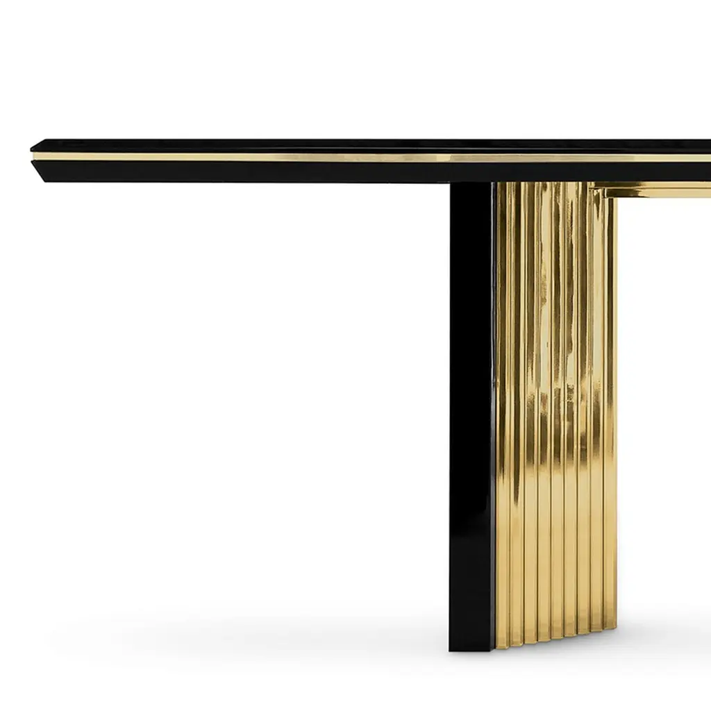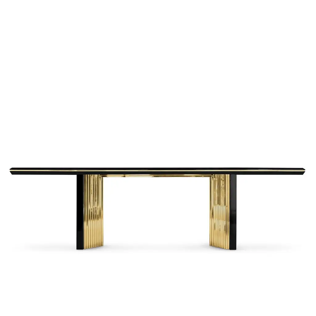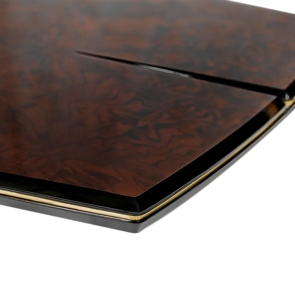 Dining Table Maxima Walnut with wooden walnut lacqueredtop and structure and with gold plated solid polished brasstrim. With gold plated solid polished brass on base.