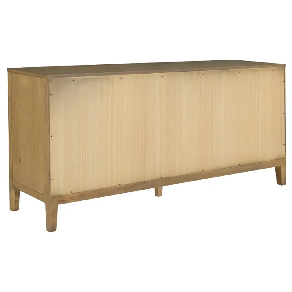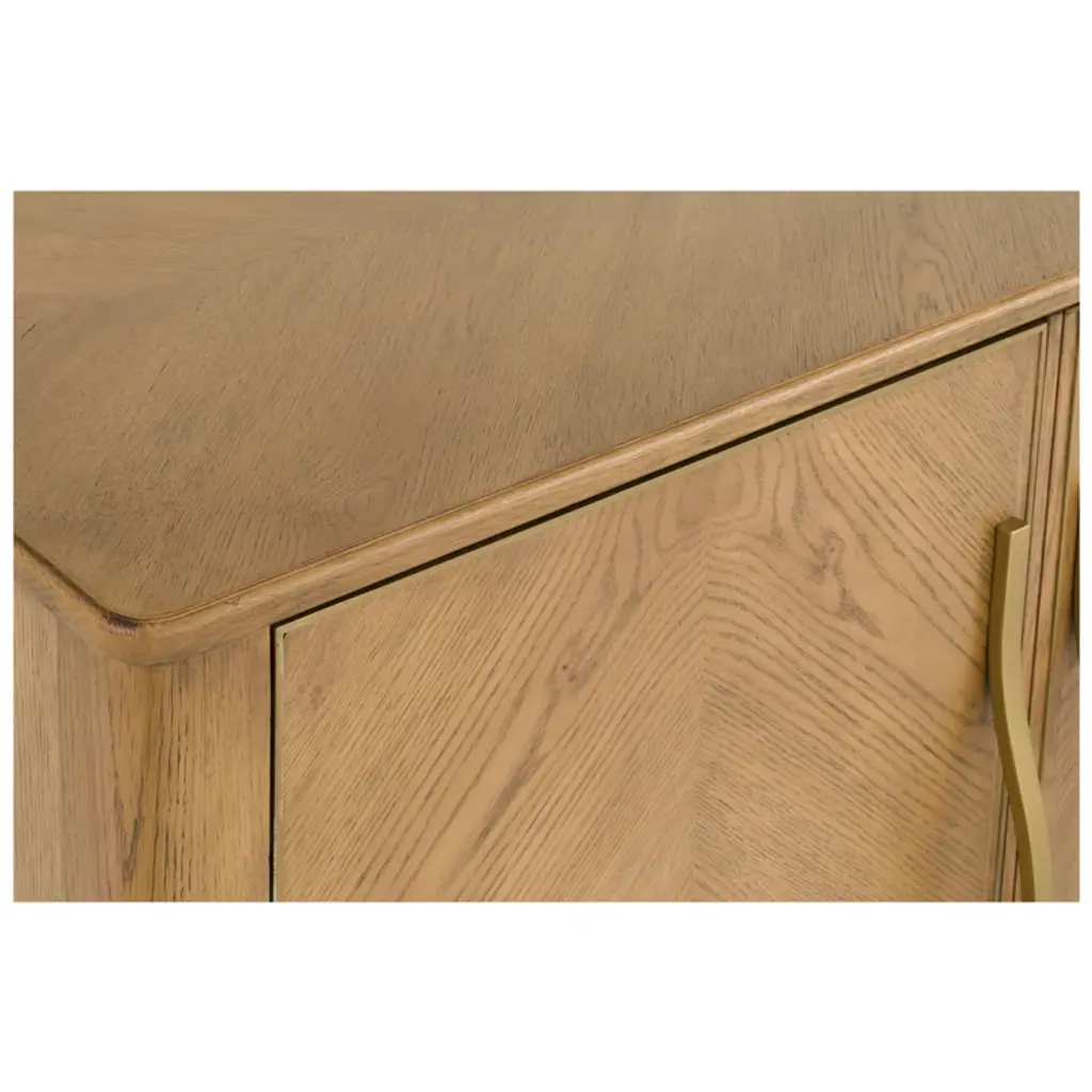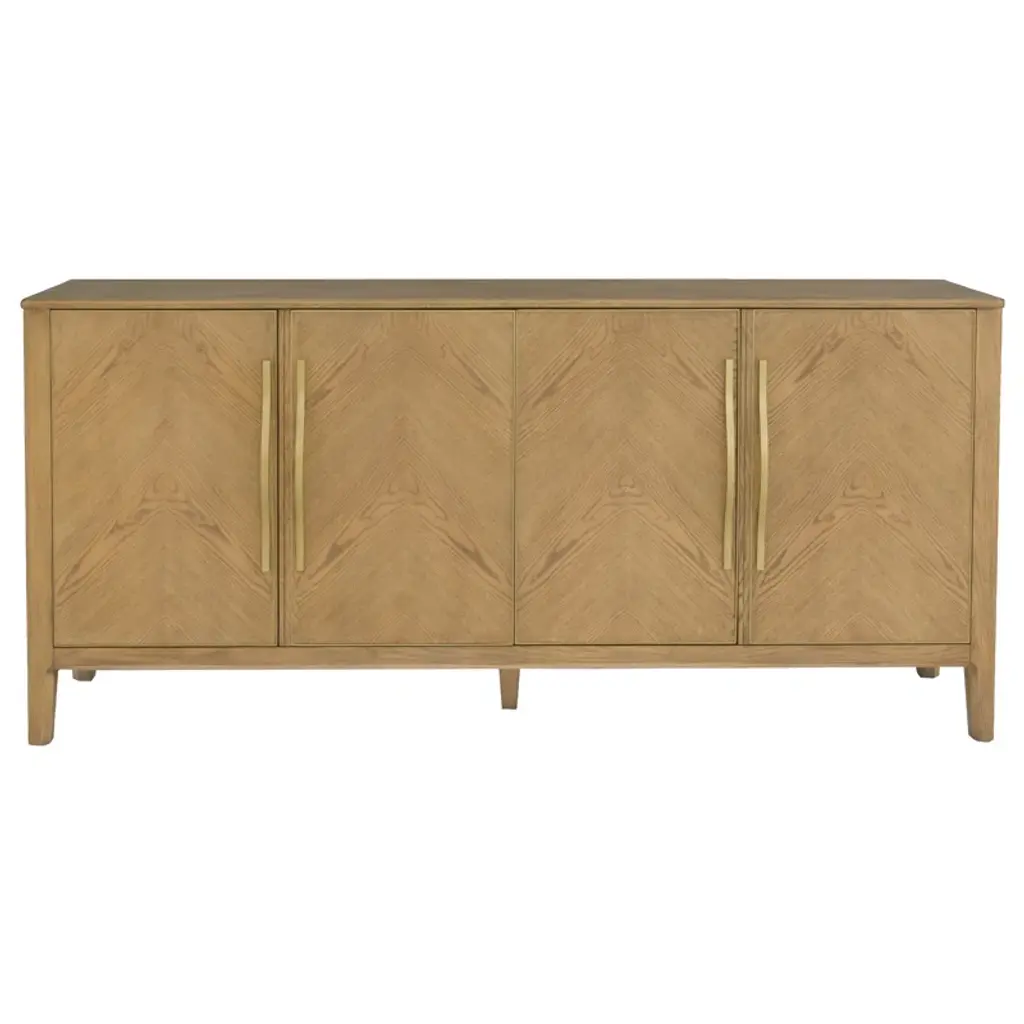 Inspired by mid-century design, our Maxwell collection features clean lines paired with rounded corners to create a modern yet timeless aesthetic. crafted from hand-selected oak solids and veneers, the Maxwell dining collection consists of a dining table. Credenza, armchair, and side chair. special features include a dining table extending from 78" to 118", chairs covered in cream bouclé and punctuated with large brass nail detail on seat backs, and a solid brass handle on the credenza.