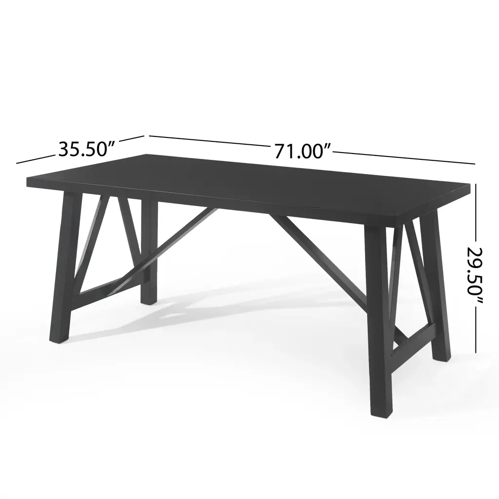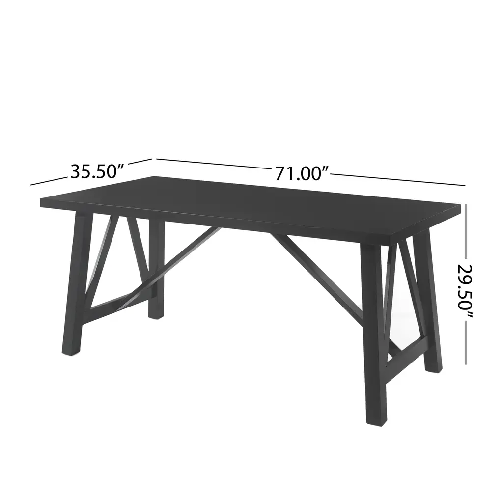 ARMHOUSE STYLE: Our dining table offers a farmhouse style that is known for its charm and simplicity. With cross beam frames and a combination of clean, crisp lines and wood, this table brings a homey feel to any living space.. RUBBERWOOD FRAME: Our environmentally-friendly wood not only offers plenty of durability, but it also gives this piece a beautiful natural-grain look. Combined with a gorgeous finish, this wood will truly stand out in any room.. WOOD-LIKE TOP: This wood alternative is engineered from real wood, heat, pressure, and resin, giving it a low-maintenance yet stunning appearance. Our table uses this material to give the appearance of a beautiful wood look without the high upkeep.. DIMENSIONS: Choose an accessory that is the perfect size for you and your furniture. This dining table is 71.00” W x 44.50” D x 29.50” H. You will love how much your space can transform with the simple addition of this charming table.. ASSEMBLY REQUIRED: Some assembly is required for this dining table. All of the instructions and tools needed for assembly are included.