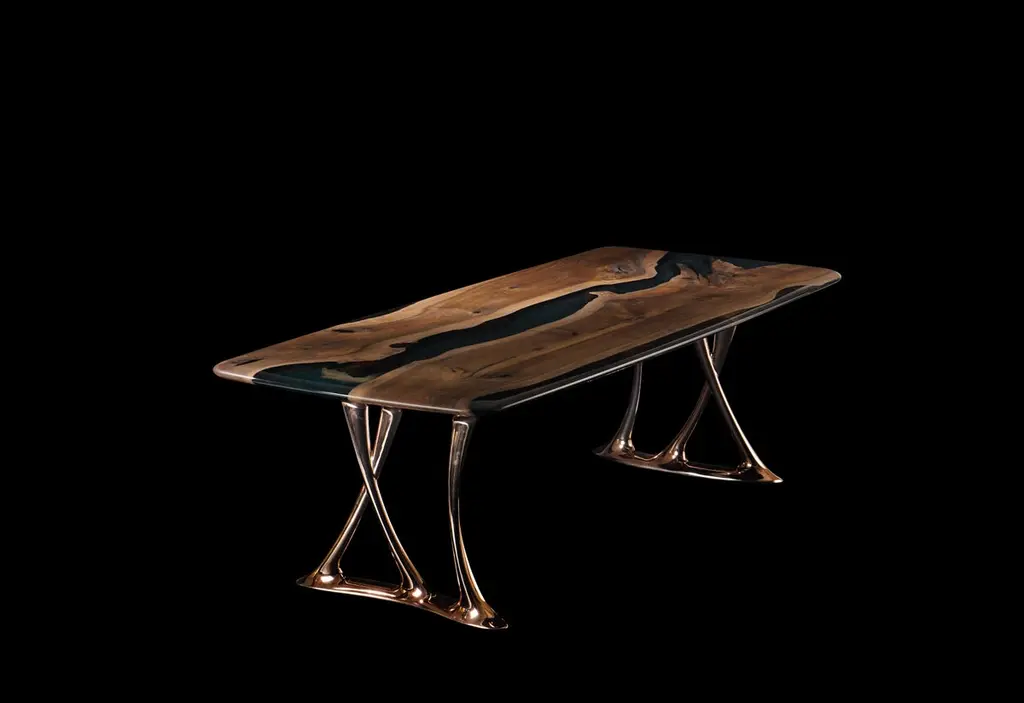 Medma Dining Table: Cast Aluminum Walnut Resin Table