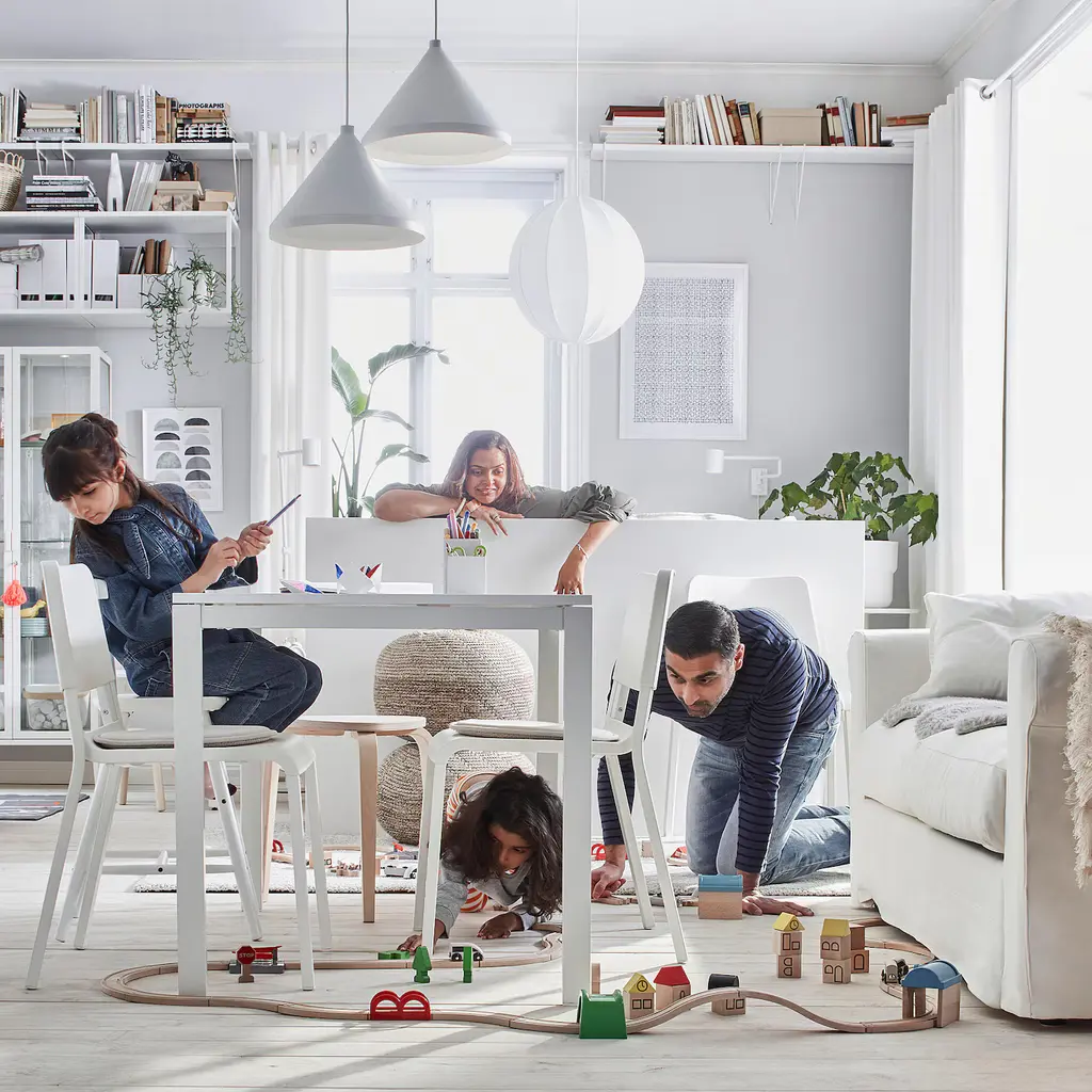 MELLTORP Table - white 49 1/4x29 1/2 ". The table is very sturdy thanks to the metal frame. The melamine surface is stain- and scratch-resistant, and easy to wipe clean – an ideal choice for families with children. The table is available in 2 sizes, seating 2-4 people. Seats 4.