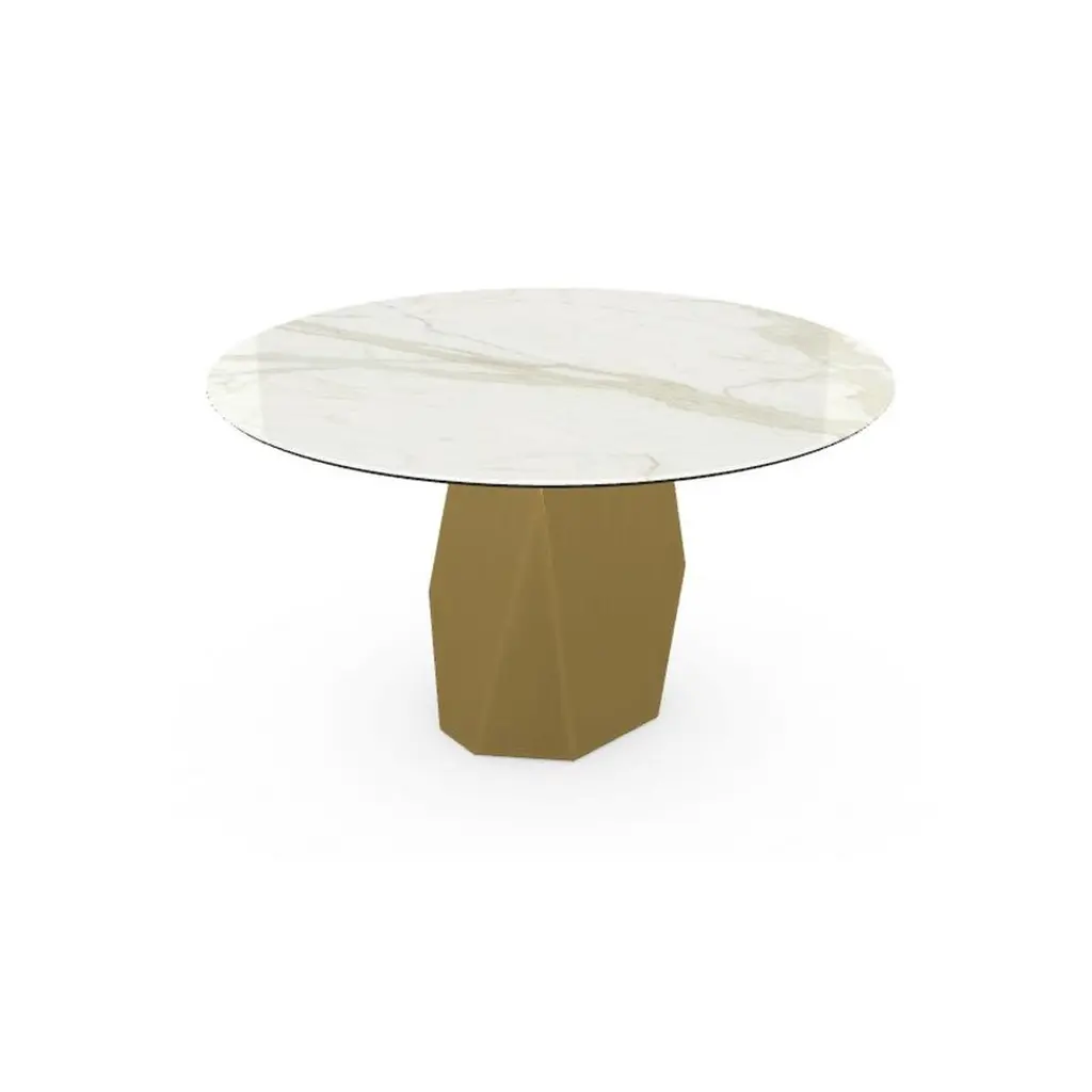 Menhir, Dining Table With Round Calacatta Ceramic Top On Brass Base