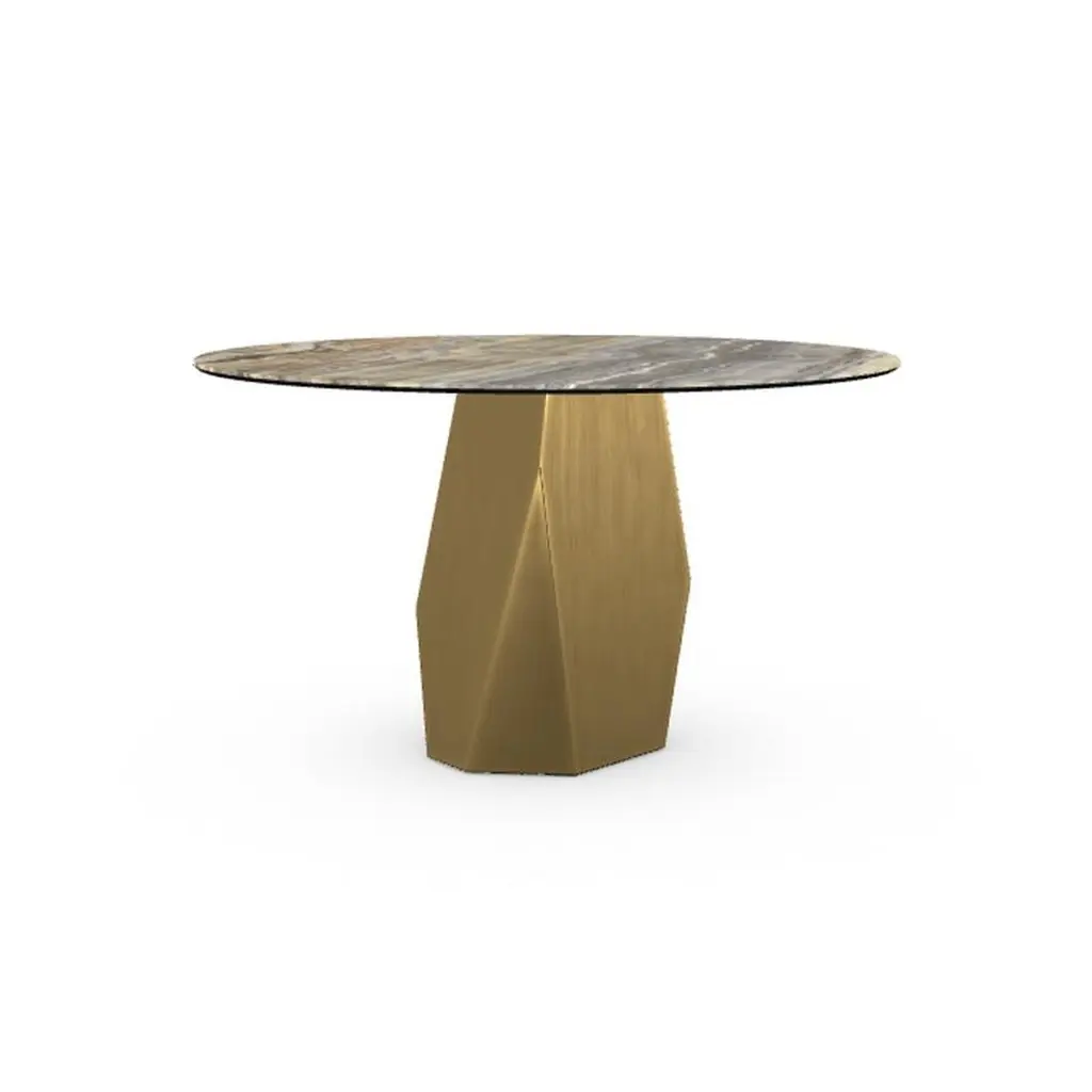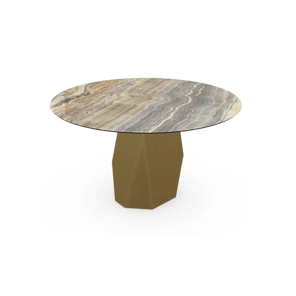 Menhir, Dining Table With Round Grey Onyx Ceramic Top On Brass Base