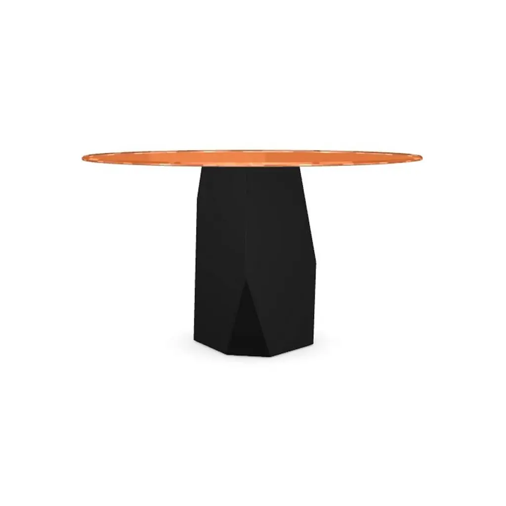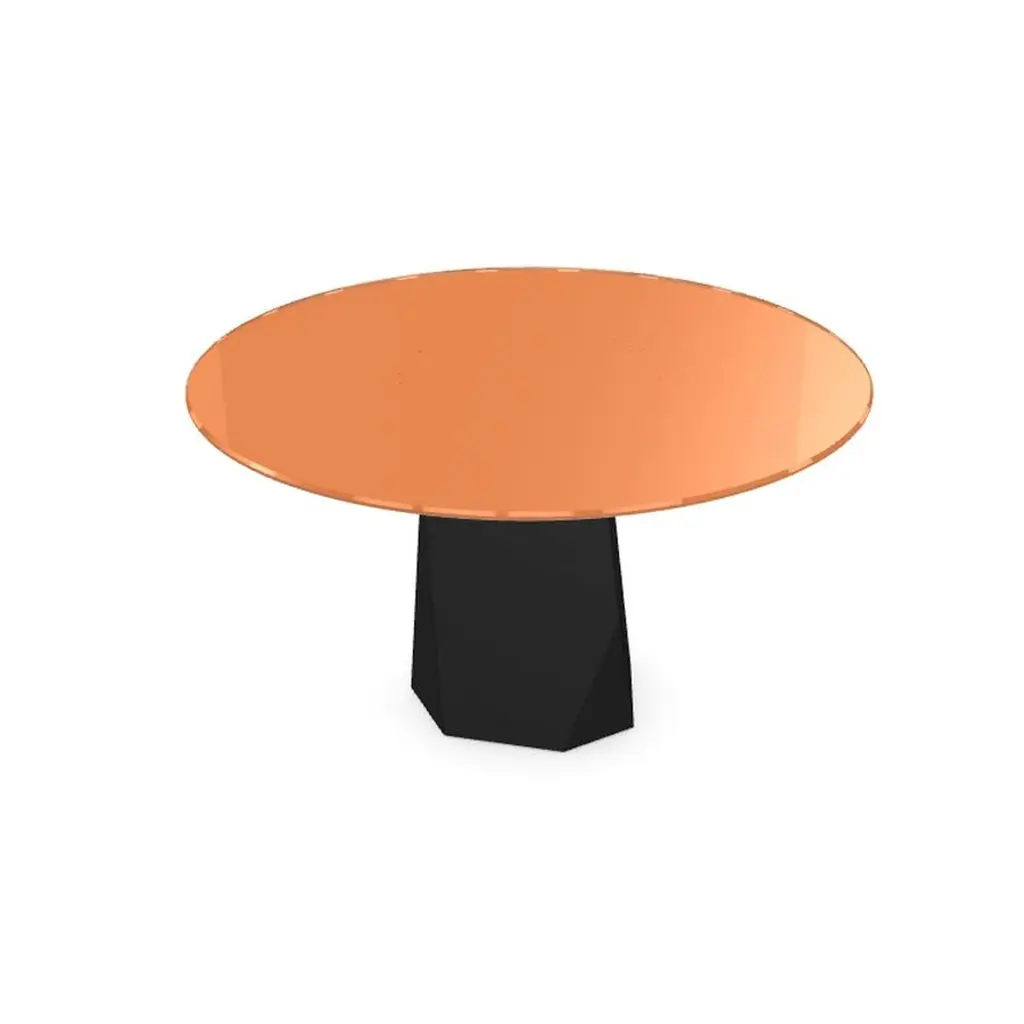 Menhir, Dining Table With Round Orange Glass Top On Metal Base, Made In Italy