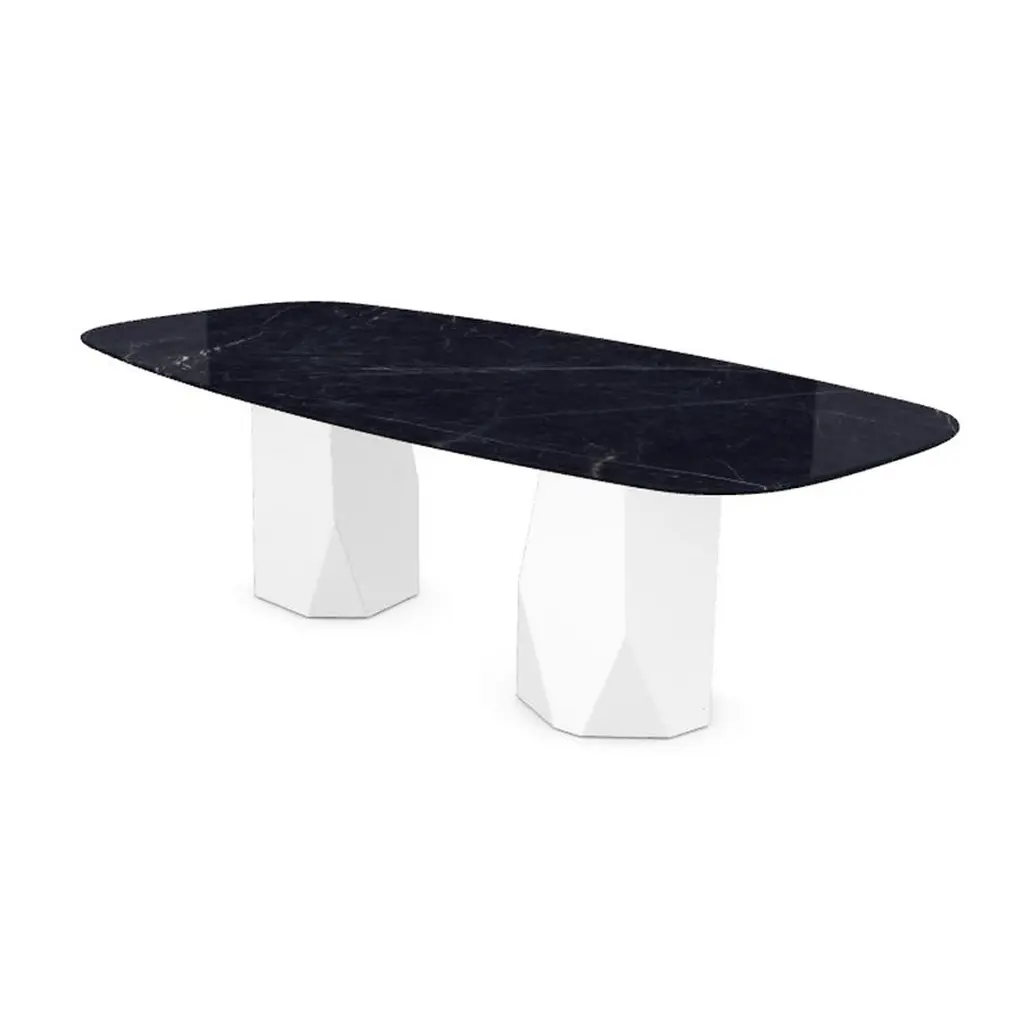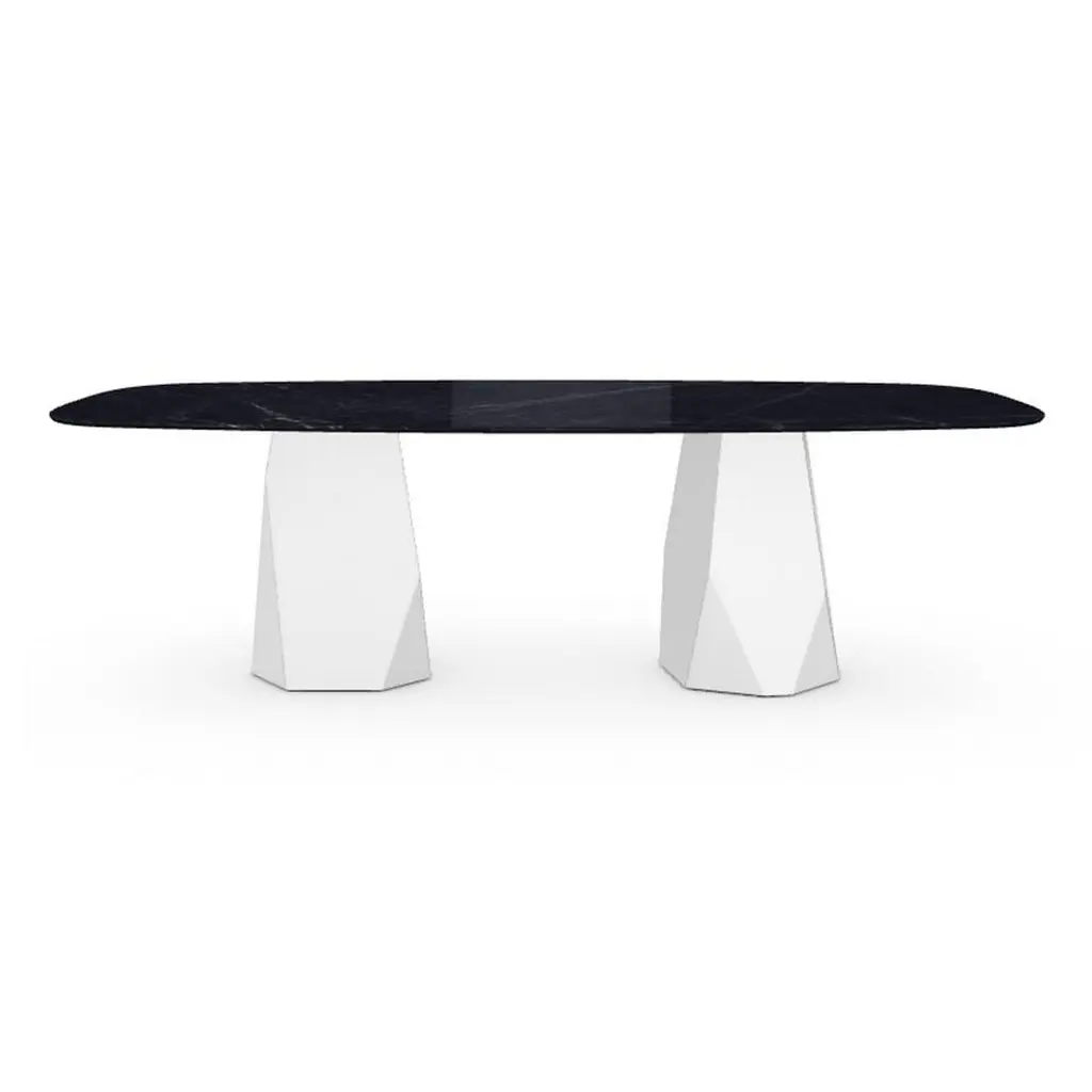 Menhir Two Bases, Dining Table With Black Marquina Ceramic Top On Metal Base