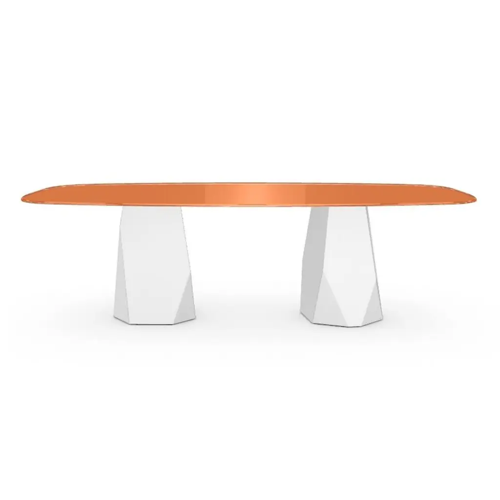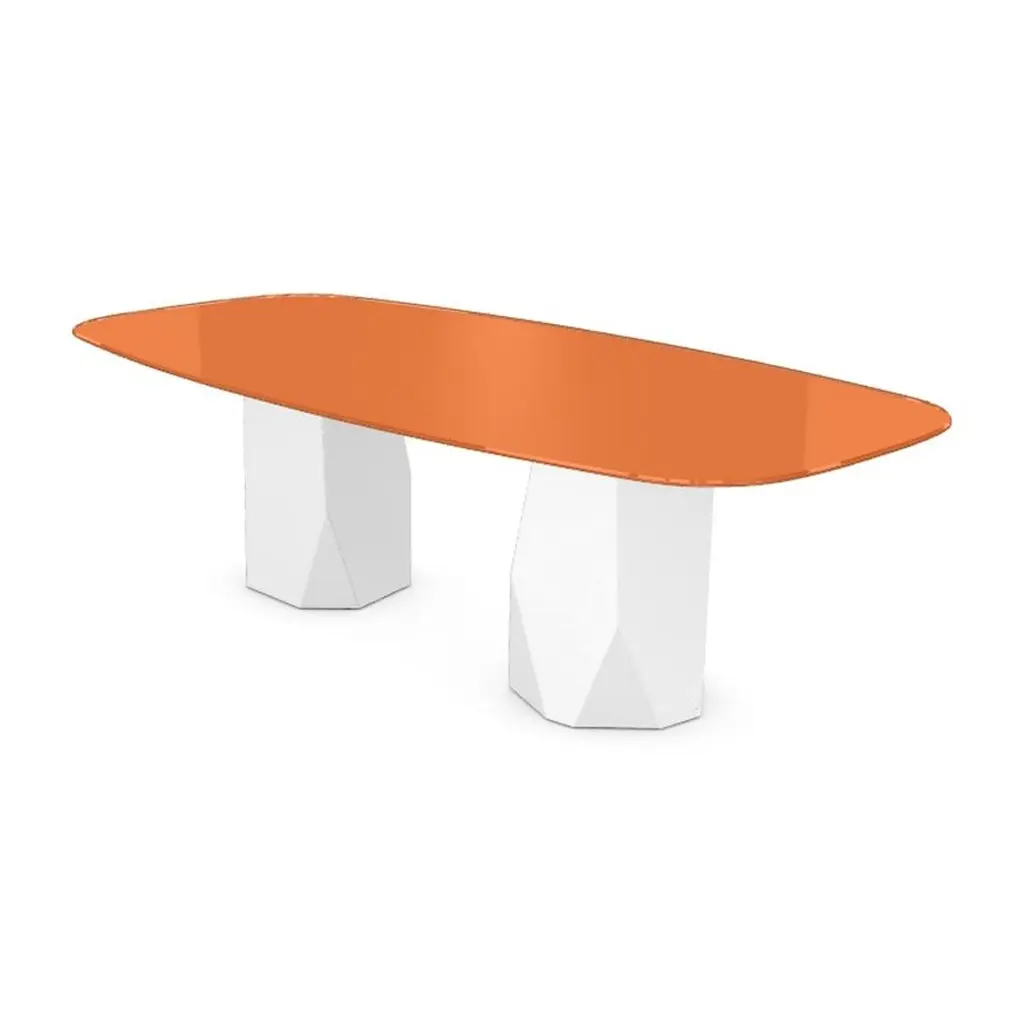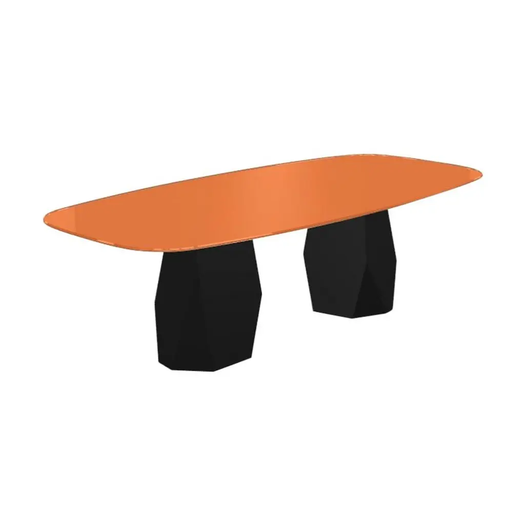 Menhir Two Bases, Dining Table With Orange Glass Top On Metal Base