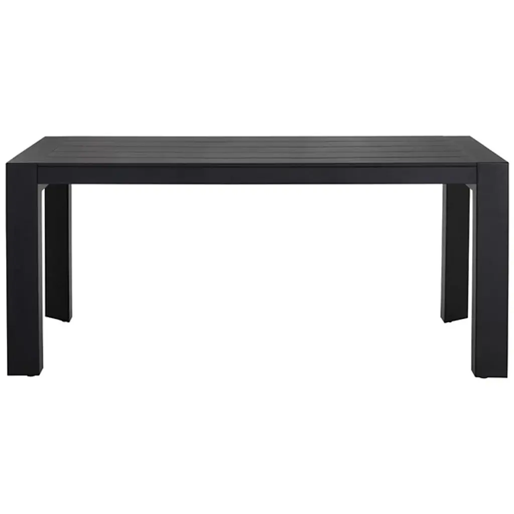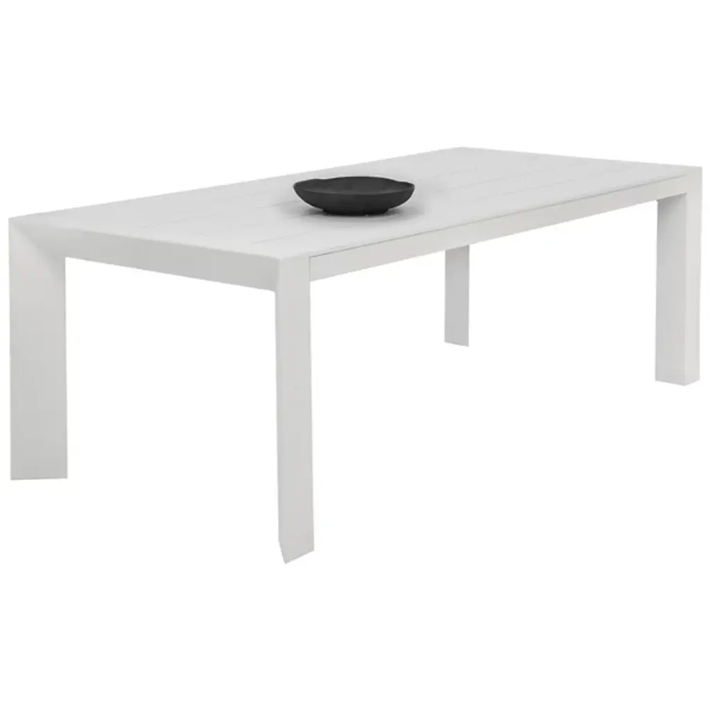 The Merano Outdoor Dining Table from Sunpan redefines classic design with a modern twist characterized by sleek, defined lines that create a striking silhouette. Crafted from white powder-coated aluminum, it features a slatted tabletop that adds a contemporary touch while ensuring durability and easy maintenance. This table seamlessly blends minimalist aesthetics with functional design, making it a stylish centerpiece for any dining space looking to achieve a clean and sophisticated look.