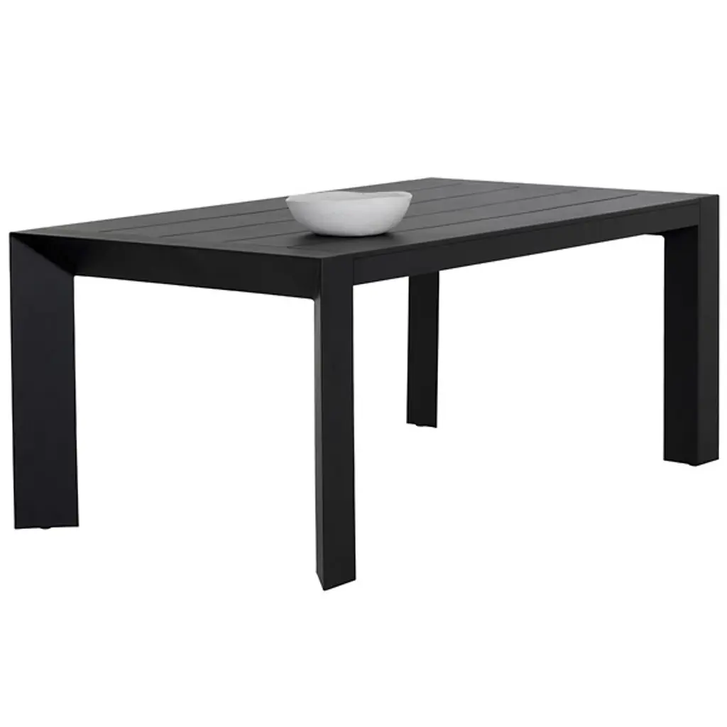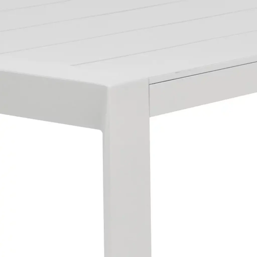 The Merano Outdoor Dining Table from Sunpan redefines classic design with a modern twist characterized by sleek, defined lines that create a striking silhouette. Crafted from white powder-coated aluminum, it features a slatted tabletop that adds a contemporary touch while ensuring durability and easy maintenance. This table seamlessly blends minimalist aesthetics with functional design, making it a stylish centerpiece for any dining space looking to achieve a clean and sophisticated look.