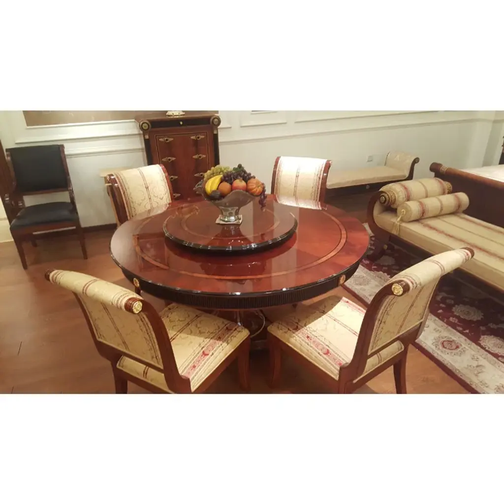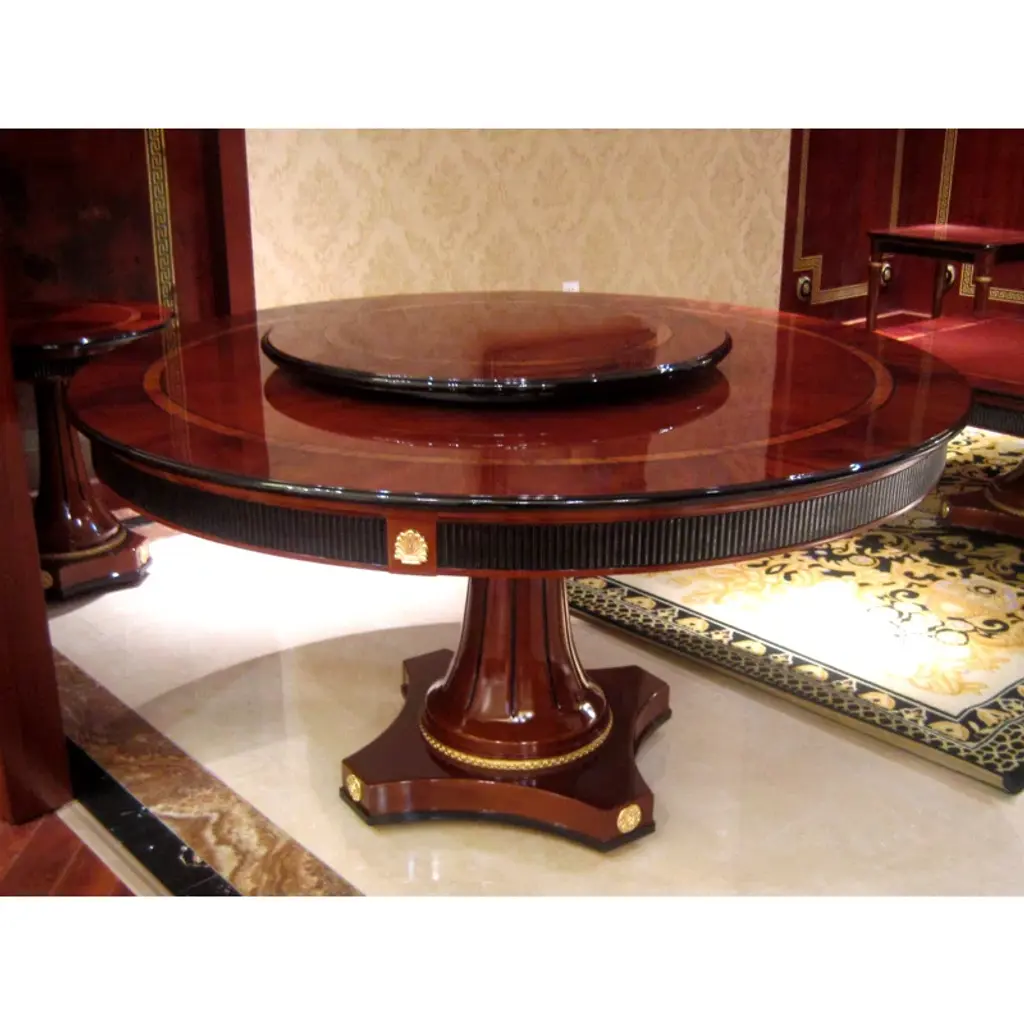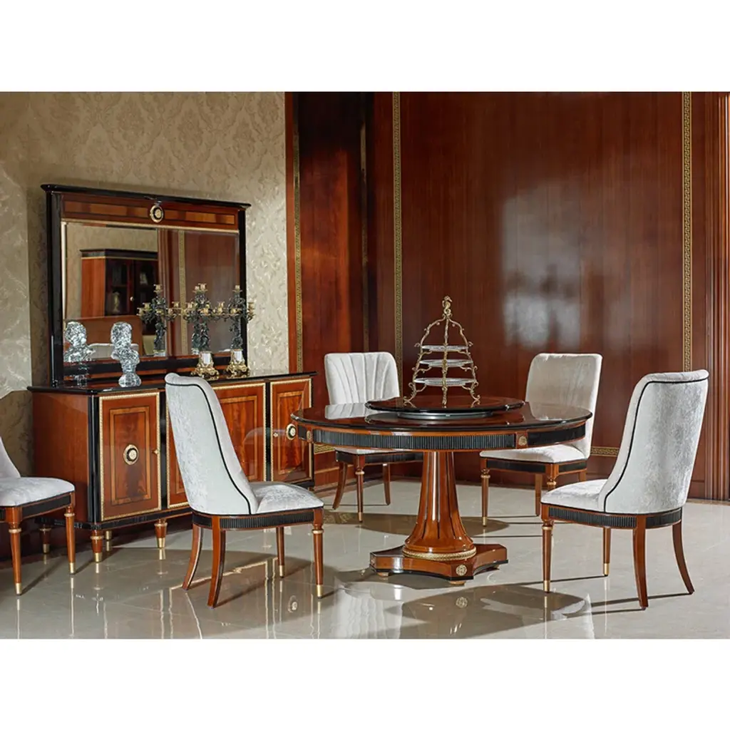 This beautiful wood dining table, with elegant inlay work throughout, provides a classic look to your dining room. With intricate markings and stylish designs, the Messina Round Dining Table is sure to be an eye-catcher for guests!