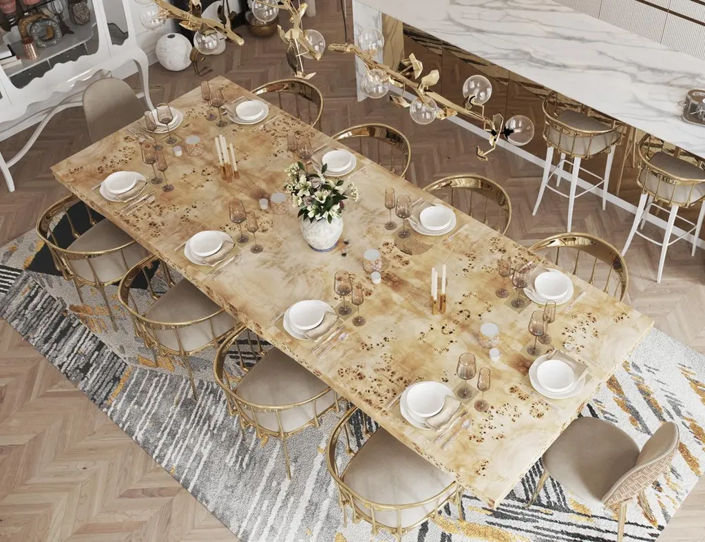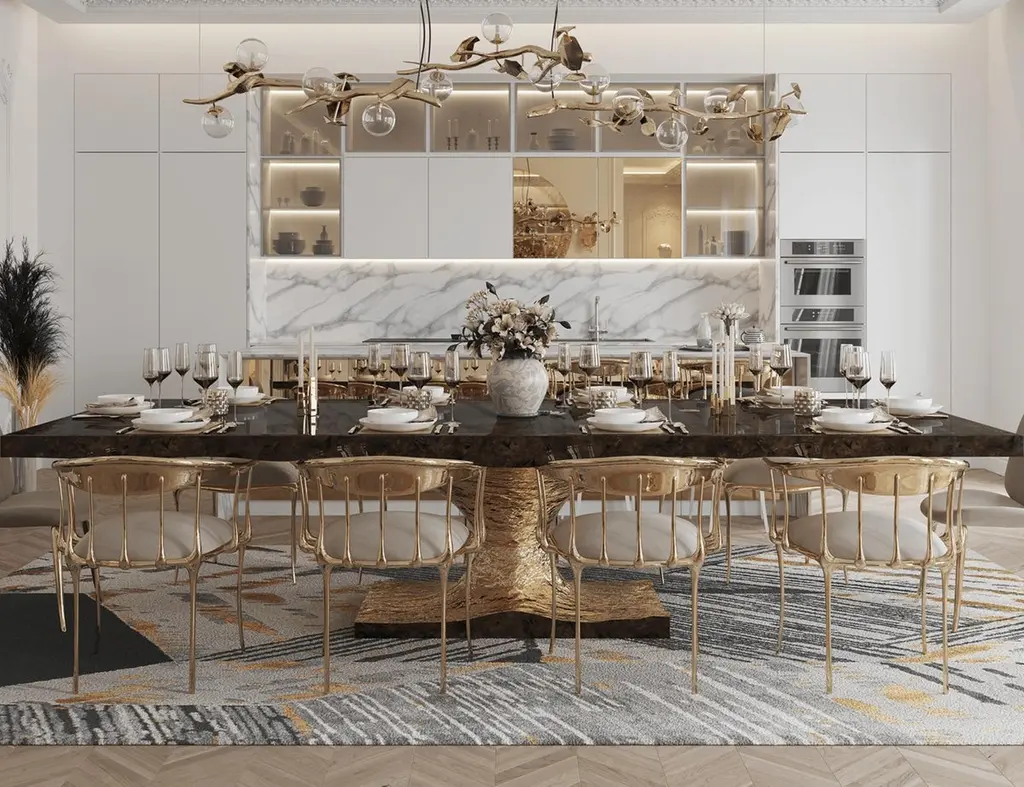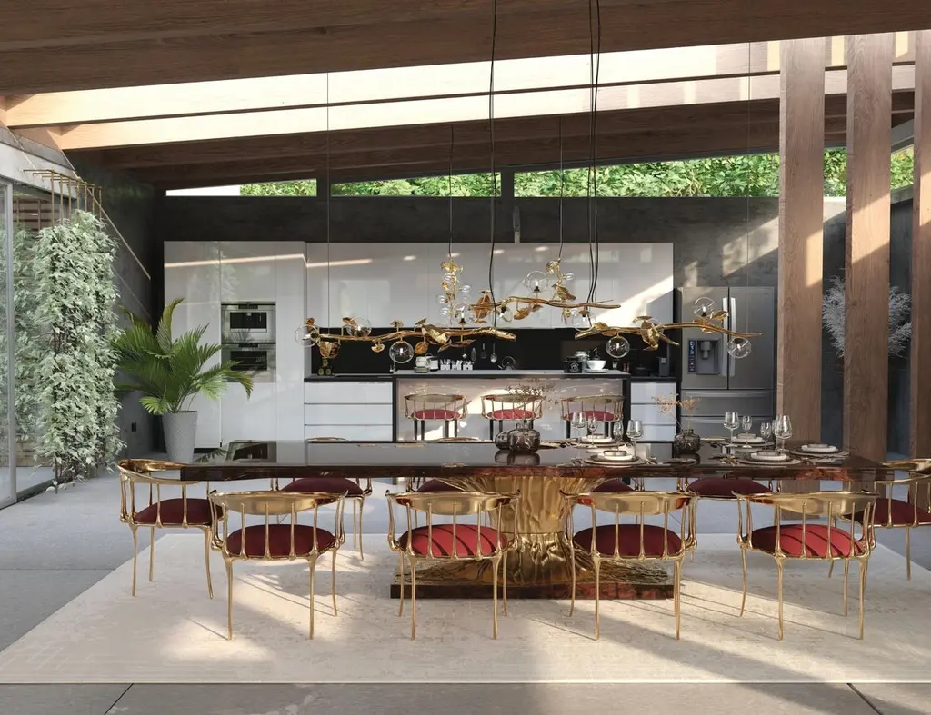 After the huge success of Metamorphosis Series, Boca do Lobo creates Metamorphosis Dining Table in order to strengthen this unique concept. This luxury dining table has come to symbolize the evolutionary history of life, representing the last stage of the cycle through the usage of sculpted fossils on display at the top of the table. It also represents the effort made by our designers to questioning the existence of things, by answering a simple question: 'How can we define something as living?' According to Boca do Lobo's quality signature, Metamorphosis Dining Table embodies handmade techniques such as wood carving, metal cutting and hammering, and polishing, executed by some of the best craftsman in the country. A unique product for those who have a peculiar taste for limited edition pieces and conceptual designs.