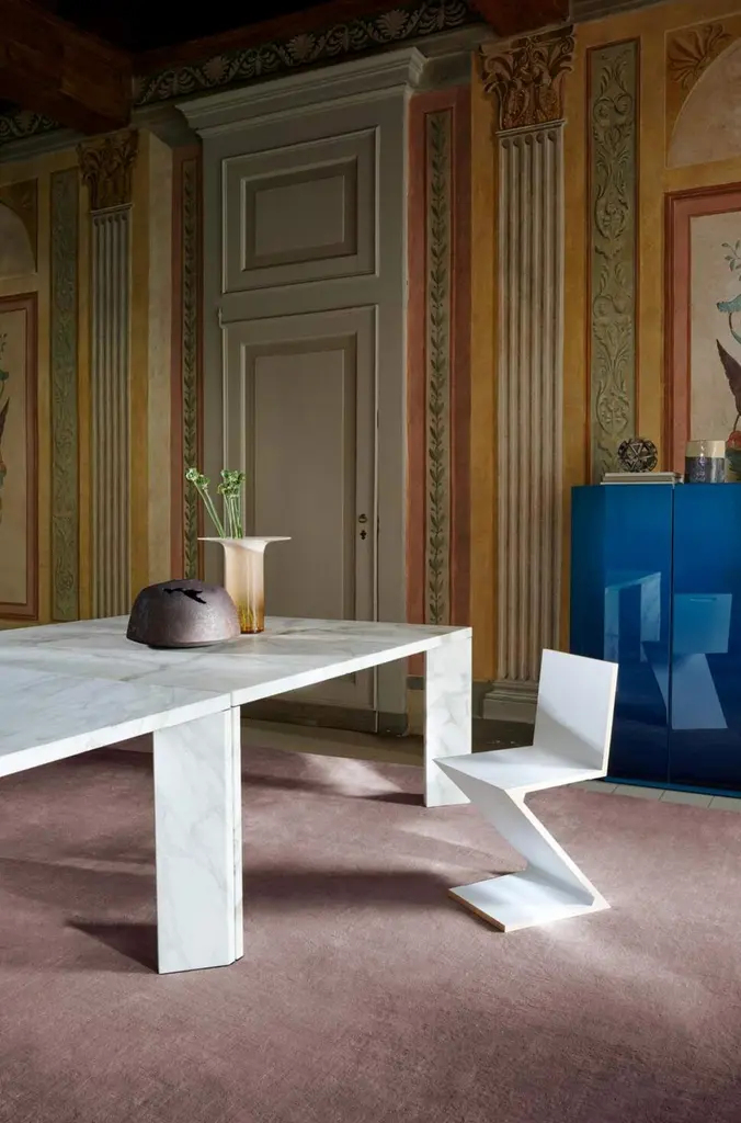 Michael Anastassiades Ordinal Table For CassinaA collection of tables by Michael Anastassiades with contemporary, sculptural lines, where the London designer’s typical metal work merges with the artisan skills and creativity of the Cassina master joiners.The clean, minimalist lines of this design table pair a very thin wood or marble top with slender legs placed on the diagonal to make more room for diners, thanks to a complex construction technique that marries stability, solidity and space-saving size.The range includes 5 sizes, in square, rectangular or oval top variants, lacquered or veneered. The single-finish marble table version provides additional sculptural preciousness to the collection.TOPAmerican walnut, natural or black stained oak veneer, matt or glossy lacquered, marble.LEGSSolid oak or anodized, painted or chromed aluminum, placed diagonally at the ends of the table.A collection of contemporary and sculptural dining tables, in which the typical metal workmanship of the designer is combined with the craftsmanship and expertise of the Cassina carpentry. The clean, essential design combines a minimal thickness wooden top with slender legs, in wood or anodised or painted aluminium, placed diagonally at the ends of the table to provide more space for diners. This was an extreme challenge for the company's Research and Development Centre, which came up with an innovative solution combining stability, strength and reduced thickness. The range includes two square, two rectangular and one oval version, available with lacquered or veneered tops, or in single-finish marble to add further sculptural preciousness to the collection. The models with veneered tops feature precious solid wood edges.Important information regarding images of products:Please note that some of the images show other colors and variations of the model, these images are only to present interior design proposals. The item that is selling is on the first image.Important information regarding color(s) of products:Actual colors may vary. This is due to the fact that every computer monitor, laptop, tablet and phone screen has a different capability to display colors and that everyone sees these colors differently. We try to edit our photos to show all of our products as life-like as possible, but please understand the actual color may vary slightly from your monitor.About the Designer: “One leg is placed at each of the four corners of the table, highlighting the boundaries of the top. The diagonal orientation of the legs is intended to maximize strength while the geometric design draws attention to the edge of the table. This relationship creates an illusion that changes depending on the angle of view: the leg appears sleek and slender and yet massive. Crafted primarily of aluminum, the physicality and finish of the legs changes to accentuate this interaction between color and contrast.”About Manufacture:Established in 1927 by Cesare and Umberto Cassina in Meda, Italy, Cassina launched industrial design in Italy in the 1950s, based on a totally innovative approach that marked the transition from artisan production to mass production. With a mindset focused on research and innovation, Cassina combines technology and long-standing artisan craftsmanship. Memory, research, innovation. Cassina blends traditional skills and superior productivity, meticulous attention to detail and passion, uniqueness and experimentation, wellbeing and sustainability. Today, the company continues to address new lifestyles with the creation of complete, harmonious interior decor solutions that embody the best contemporary design for all areas of the home.