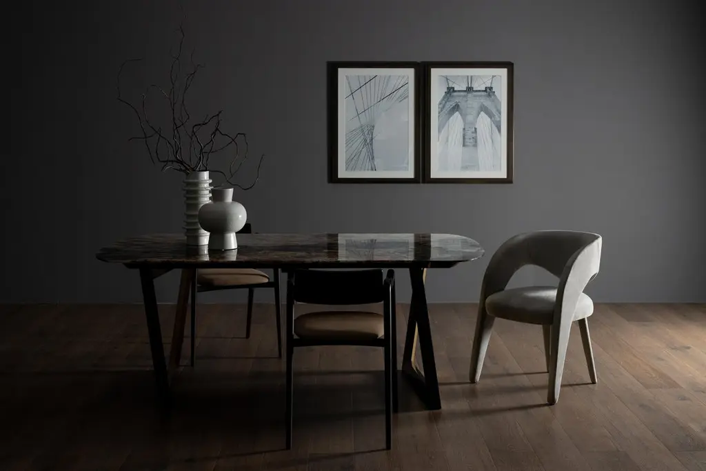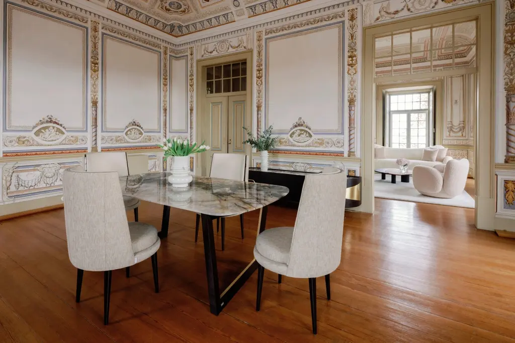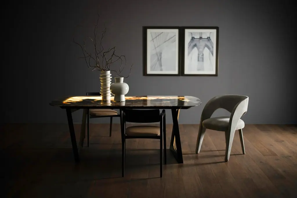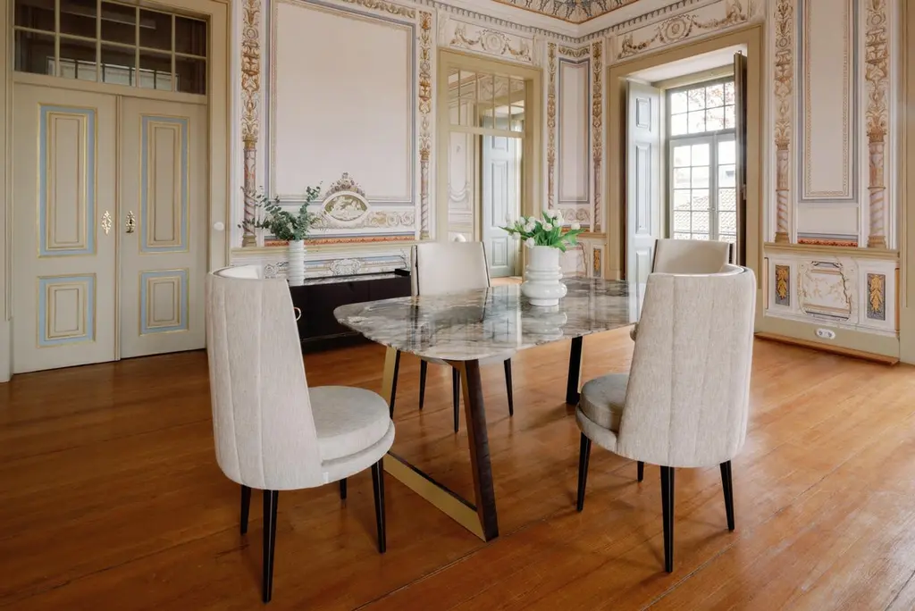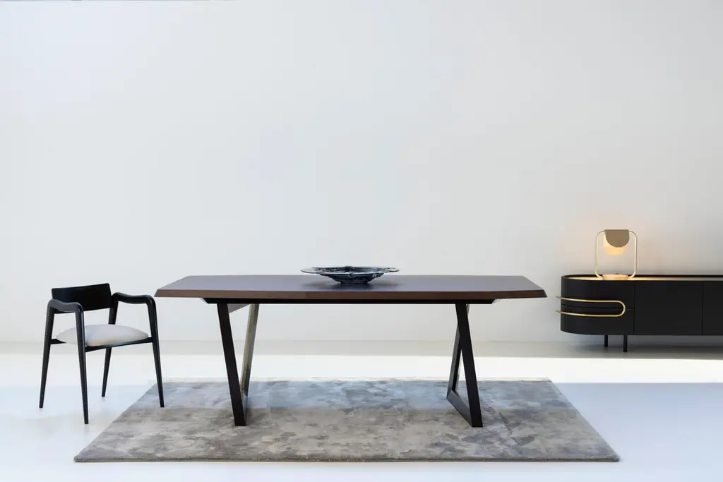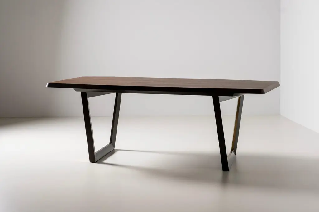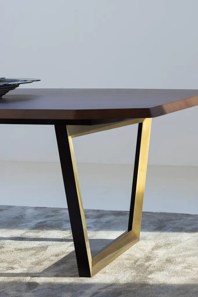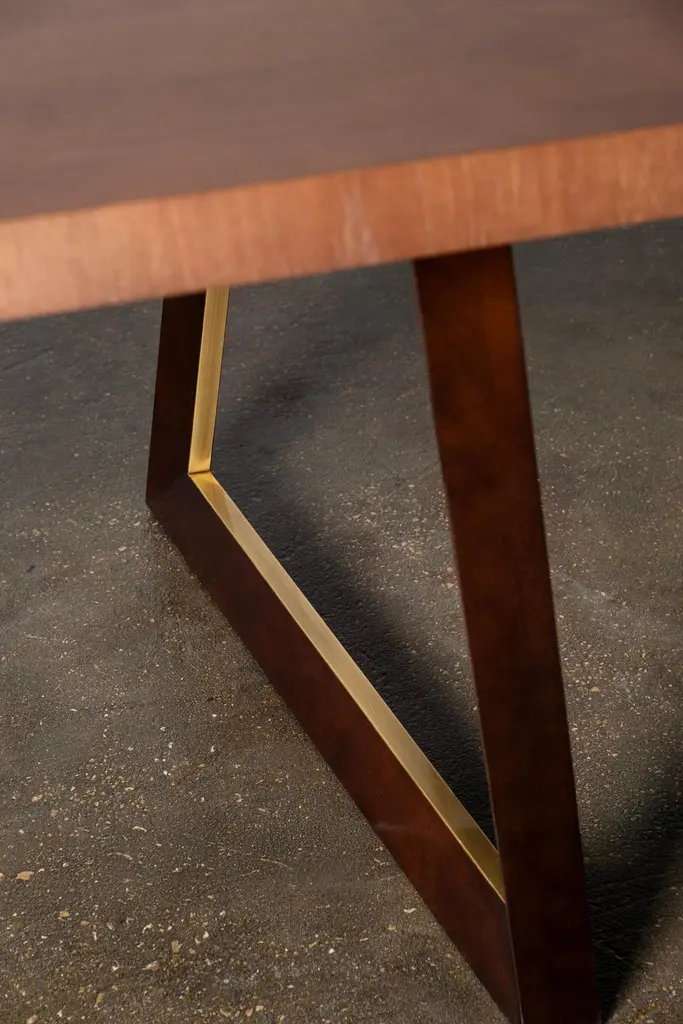 Mid-Century Modern Modern Olisippo Dining Table, Contemporary Collection, Handcrafted in Portugal - Europe by Greenapple.The Olisippo dining table pays homage to Lisbon’s ancient history, capturing its architectural essence where craftsmanship takes center stage. Designed to highlight the timeless elegance of fine wood, this dining table becomes a striking focal point in refined dining interiors. The natural interplay of light across its surface accentuates the rich textures and intricate grain of the wood, transforming Olisippo into a sculptural masterpiece.The Olisippo dining table features a wooden top in American oak veneer, stained in tobacco colour with open-pore and a matte varnish. Base crafted from solid beech, stained in dark brown walnut with a satin varnish. Inlay metal details in brushed and burnished antique brass with a high-gloss varnish.Both vener and solid beech are treated to be anti-fungal and vermin-free, ensuring exceptional longevity and preservation.The Olisippo dining table can be customized in terms of dimensions, materials and finishes. Olisippo 8-Seat Dining Table Material CodesWD123 American Oak, Stained Open-pore, Varnished, Brown Walnut, MatteWD005 Beech, Stained Closed-pore, Varnished, Dark Brown Walnut, SatinME007 Brass, Brushed, Burnished, Varnished, Antique-Brass, High-GlossHandcrafted in Portugal - Europe by GreenappleUnique by design, Crafted by peopleGreenapple transforms contemporary spaces into exclusive narratives of design and craftsmanship. From custom-made furniture to bespoke interiors, each creation is a timeless work of art, shaped by master artisans who honor centuries-old techniques.Founded in 2005 by Sérgio Rebola and Rute Martins, Greenapple has earned global recognition among high-end clientele and leading design firms. While Rute designs each unique piece, Sérgio ensures uncompromising quality from design to production and from production to your home. We provide a seamless experience, offering short production lead times, worldwide delivery within 7 to 10 days, and white-glove service upon request.For U.S. clients, we can handle all customs clearance, cover duties, and offer white-glove service as well upon request.Table