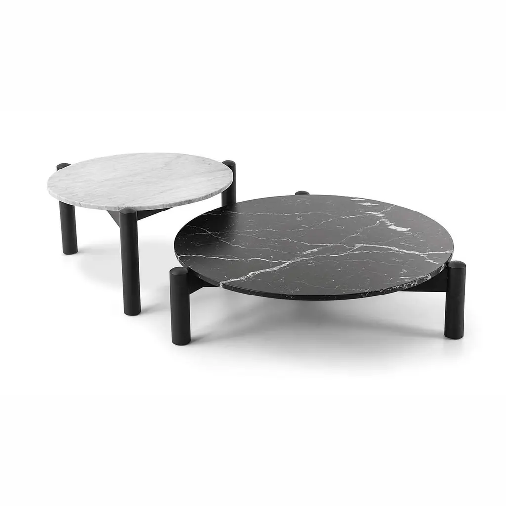 Mid Century Modern Table Black Wood and Marble by Charlotte Perriand for CassinaTable designed by Charlotte Perriand in 1937. Relaunched in 2019.Manufactured by Cassina in Italy.The first model of this historic design low table was crafted in 1937 for Charlotte Perriand’s studio in Montparnasse.The first example of this table was made in 1937 for Charlotte Perriand’s Parisian studio in Montparnasse. The structure of the base of the Table à plateau interchangeable is made up of three circular section legs in black stained ash wood, joined by three crosspieces on which the table top, in extra-white glass or Marquinia or Carrara marble, is placed. A project designed to be declined in different ways, its top can be interchanged as required. In fact, the model can be found in many other projects by Charlotte Perriand. For example, in Japan in the 40’s with a top produced in local materials, and in the living areas of the apartments of the Unité d'Habitation in Marseille.The structure of the base is made of three cylindrical legs joined by crosspieces which support the top. The design for this structure, developed to be adapted in different ways, allows the tops to be interchanged.Materials:Black Marble Measurements:Ø 102cm H 28 cm Important information regarding images of products:Please note that some of the images show other colors and variations of the model, these images are only to present interior design proposals. The item that is selling is on the first image. Important information regarding color(s) of products:Actual colors may vary. This is due to the fact that every computer monitor, laptop, tablet and phone screen has a different capability to display colors and that everyone sees these colors differently. We try to edit our photos to show all of our products as life-like as possible, but please understand the actual color may vary slightly from your monitorAbout the designer:Charlotte Perriand full membership of that avant-garde cultural movement which, from the first decades of the twentieth century, brought about a profound change in aesthetic values and gave birth to a truly modern sensitivity towards everyday life. In this context, her specific contribution focuses on interior composition, conceived as creating a new way of living, still today at the heart of contemporary lifestyle.In the sphere of 20th century furnishing history, the advent of modernity made possible the entrepreneurial audacity of this true reformer of interior design. At the beginning of her professional career she was acclaimed by critics for her Bar under the roof, exhibited at the Salon d’Automne in 1927 and constructed entirely in nickel-plated copper and anodized aluminium. In the same year, when she was just twenty-four years old, she began a decade-long collaboration with Le Corbusier and Pierre Jeanneret, at the famous design studios at 35, rue de Sèvres in Paris.Her presence in the Le Corbusier studio is visible in all the furnishings designed with him and with Pierre Jeanneret: and so Charlotte Perriand becomes a cornerstone in the reformation project promoted by the architect, adding a distinct dimension of humaneness to the often cold rationalism of Le Corbusier. In her creations she manages to animate the fundamental substance of daily life with new aesthetic values: in particular her talent and intuition in the discovery and use of new materials manifest themselves to their full extent.The ten-year long collaboration with Le Corbusier and Pierre Jeanneret, and her Japanese experience, represent periods of intense creative effervescence in the life of the artist. During her long stay in the Far East (‘40-‘46), she reveals her artistic talent to the full, through a reinterpretation of the reality of life to echo both tradition and modernity. By way of example, worthy of mention are the furnishings produced using traditional bamboo processing techniques, capable of enhancing the new forms already experimented using steel-tubing.After her work as a professional, she concentrates on a series of original and balanced productions, commissioned by top-level authorities and leading companies of the calibre of Air France, and by a number of foreign organizations, authenticating the fame she had by now gained on the international scene.About the manufacturer:In a continuing dialogue between past, present, and future, Cassina has created the I Maestri collection, revisiting furnishing designs by the 20th century’s best-known architects, including Le Corbusier, Pierre Jeanneret, Charlotte Perriand, Charles Rennie Mackintosh, Gerrit Thomas Rietveld, Franco Albini, Frank Lloyd Wright and Marco Zanuso. While the designs and functional concepts have been precisely preserved, the models have been manufactured using evolved technology. This is also the company that has manufactured iconic pieces of contemporary design from the 1950s to the present day, ideated by some of the most important international designers. Today Cassina continues to look to the future of design with audacious, passionate curiosity and an open, holistic approach. It affirms its exclusive ability to furnish a home’s living and dining spaces completely and iconically with The Cassina Perspective: a concept, a philosophy, an informed, futuristic thought. A detailed, expansive horizon of combinations; when placed together, the products have an innovative soul and the modern icons create authentic, welcoming, personal atmospheres involved in a conversation dominated by a code of design excellence, formal sensitive awareness, solidity and cultural authority.