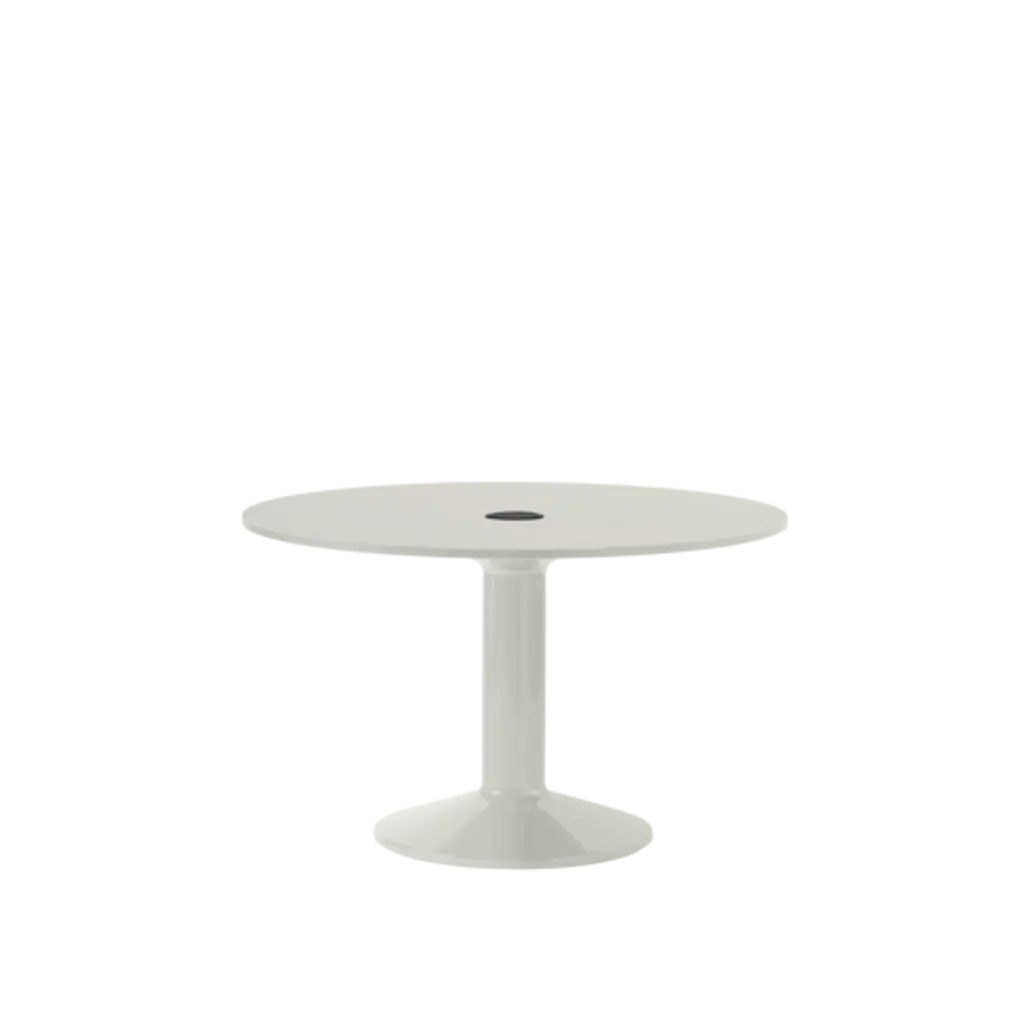 A natural focal point of the home, the Midst Table is a generous, round dining table where friends and family gather—with room to welcome more. Its refined silhouette is simple yet characteristic, enhanced by distinct detailing and contrasting materiality—matte solid oak, linoleum, or honed marble on a monolithic base made of spun steel with a durable high-gloss finish.