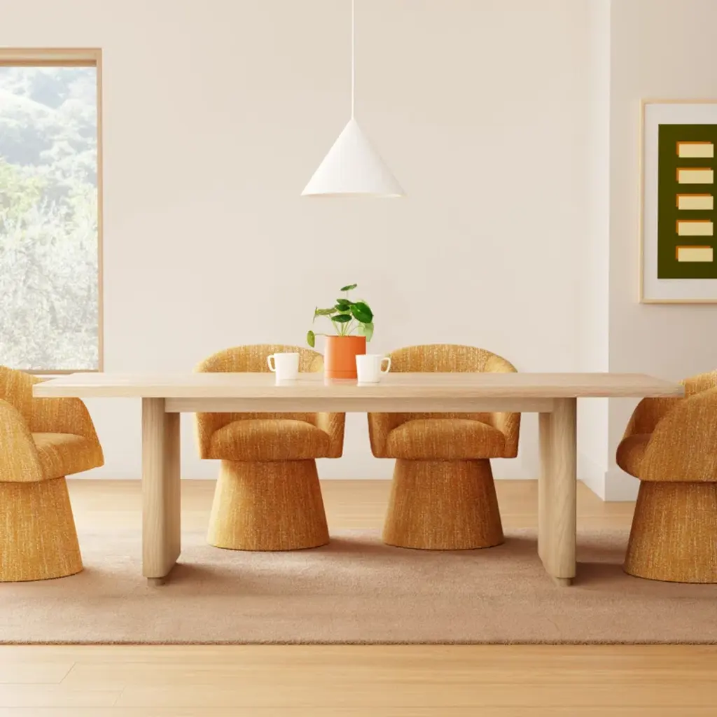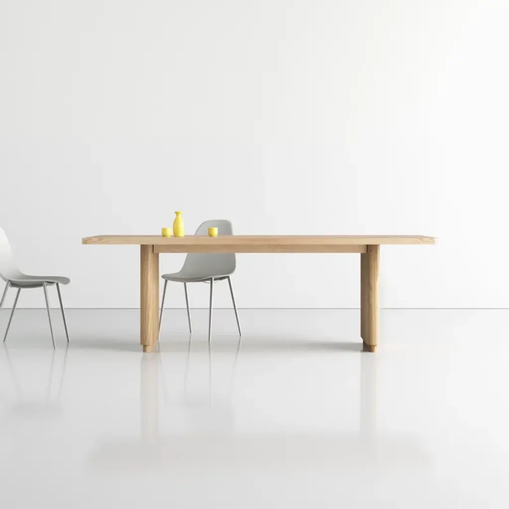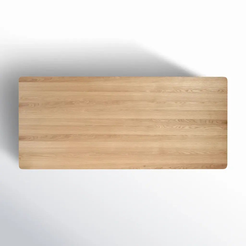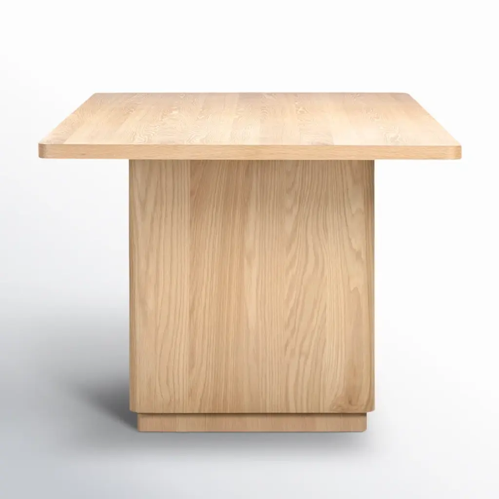 Natural allure meets minimalist design. The dining table celebrates the captivating tones of natural wood grain, seamlessly integrated into a soothing design, embracing natural beauty and character. This dining table boasts gently rounded corners and celebrates walnut's natural beauty and character.