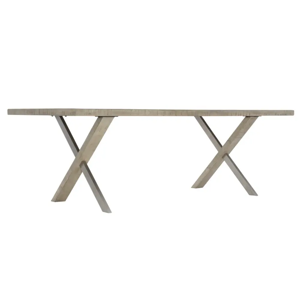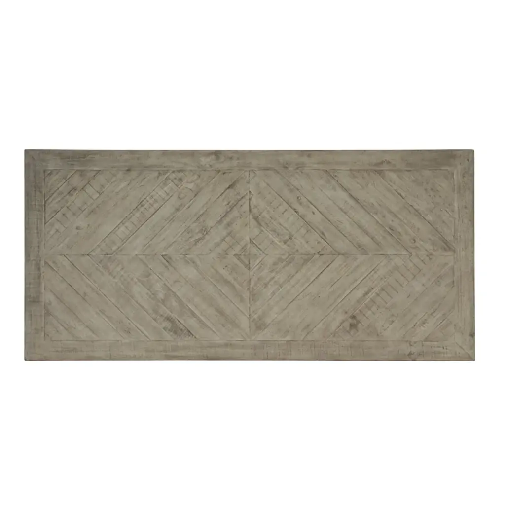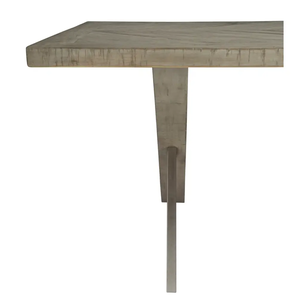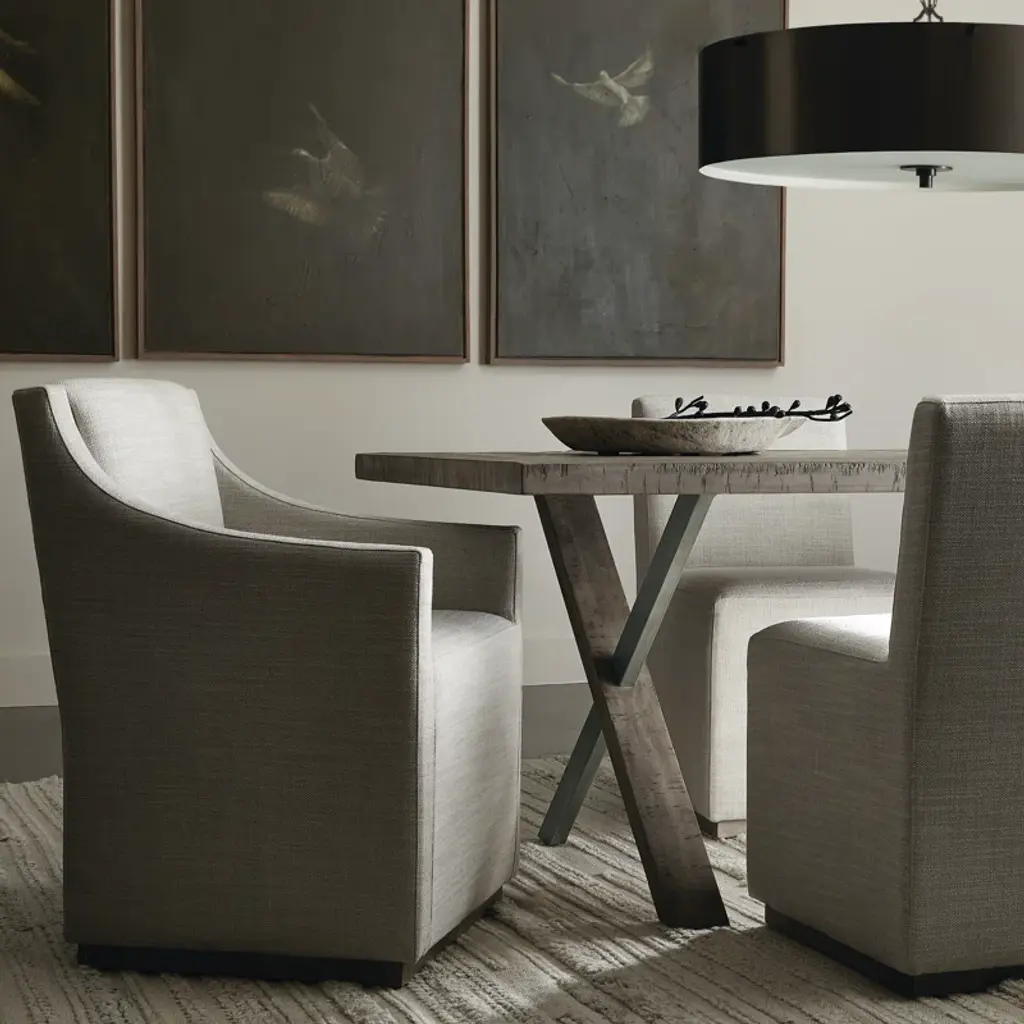 The Highland Park collection, part of Bernhardt’s eclectic loft brand, blends the best features of the farmhouse and mid-century design, with a one-of-a-kind appeal and laid-back vibe. The Milo large, inviting family-style dining table is a stunning example of rustic appeal combined with a modern dynamic. Its wood-framed top with solid wood overlays arranged in a herringbone pattern sits atop an eye-catching X-shaped base featuring composed of intersecting wood and metal posts.