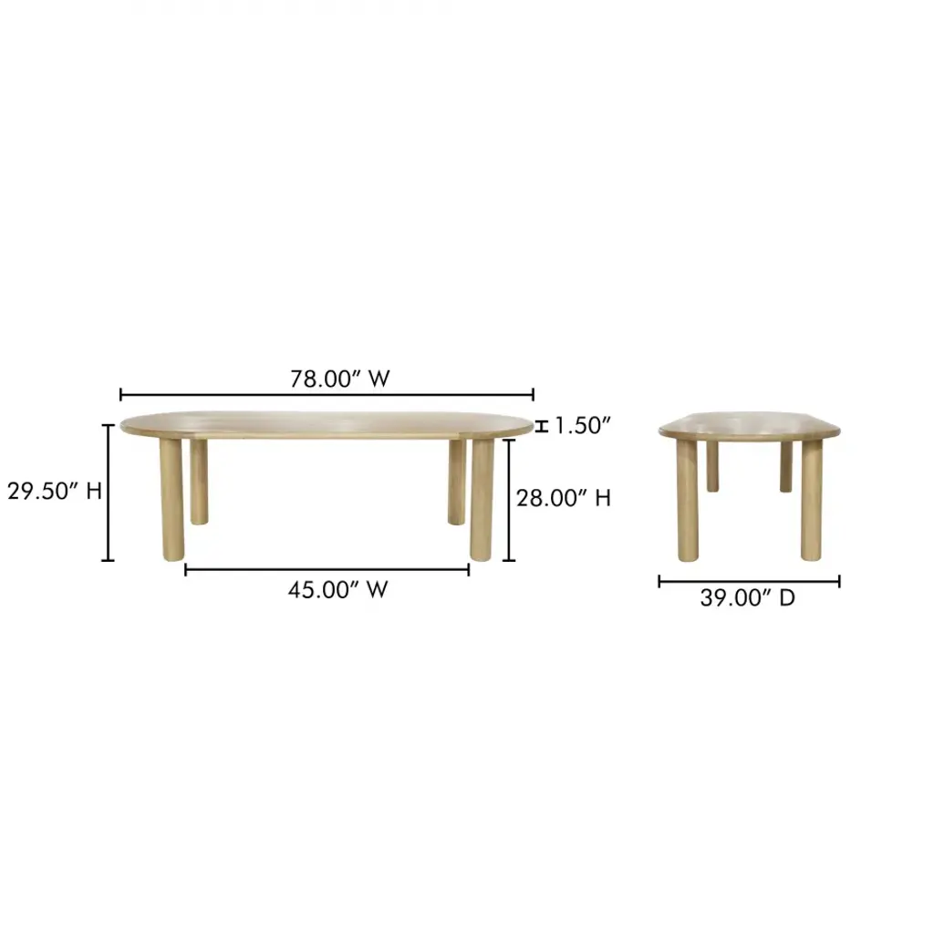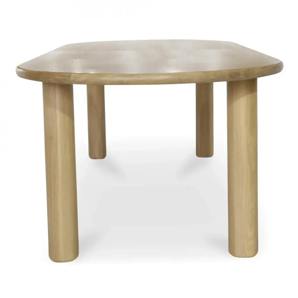 With its thick, rounded edge and sleek column legs, the Milo dining table adds a touch of warmth, comfort and sustainable design. Featuring a light oak finish, this table brings a sense of visual lightness and effortlessly complements various wood tones. Crafted from FSC-certified oak wood and veneer, the Milo showcases exquisite craftsmanship and ensures responsible sourcing from environmentally managed forests.