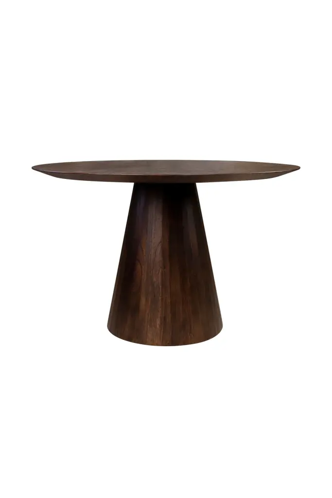 Discover the Versmissen's Congo Dining Table, a mesmerizing blend of natural beauty and contemporary design. Made with Mindi wood in a rich roasted coffee finish, it exudes warmth and character that beautify any dining space. The round tabletop provides a welcoming ambiance, while the conical pedestal base adds an air of sophistication. Transform your dining area with this table to set the stage for memorable meals and conversations.