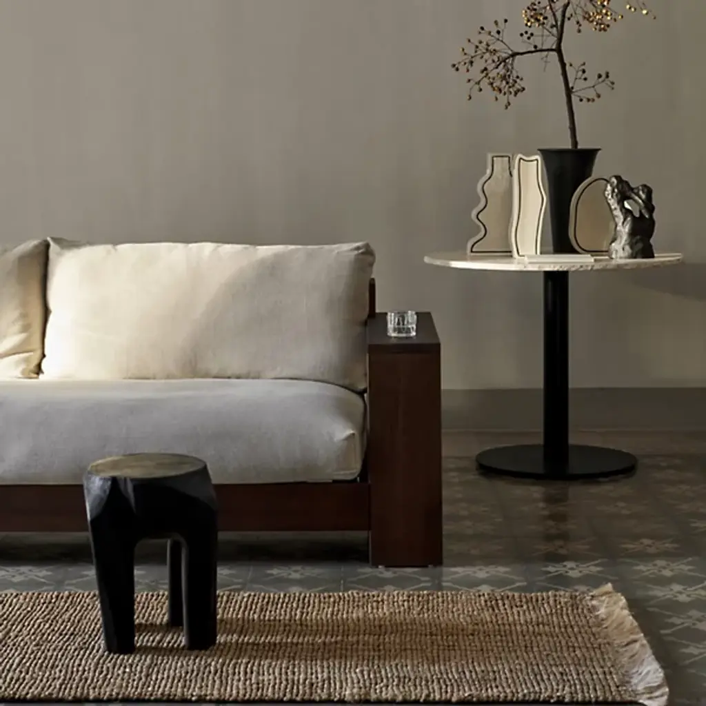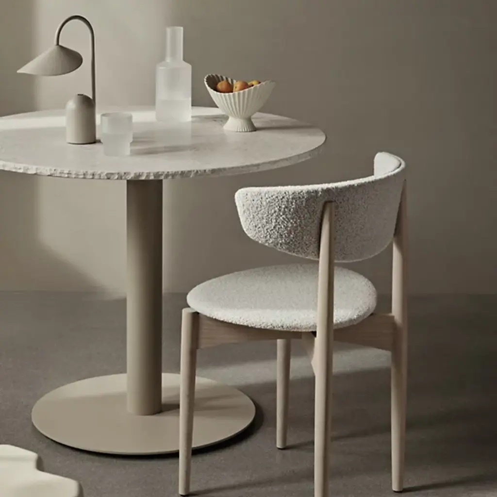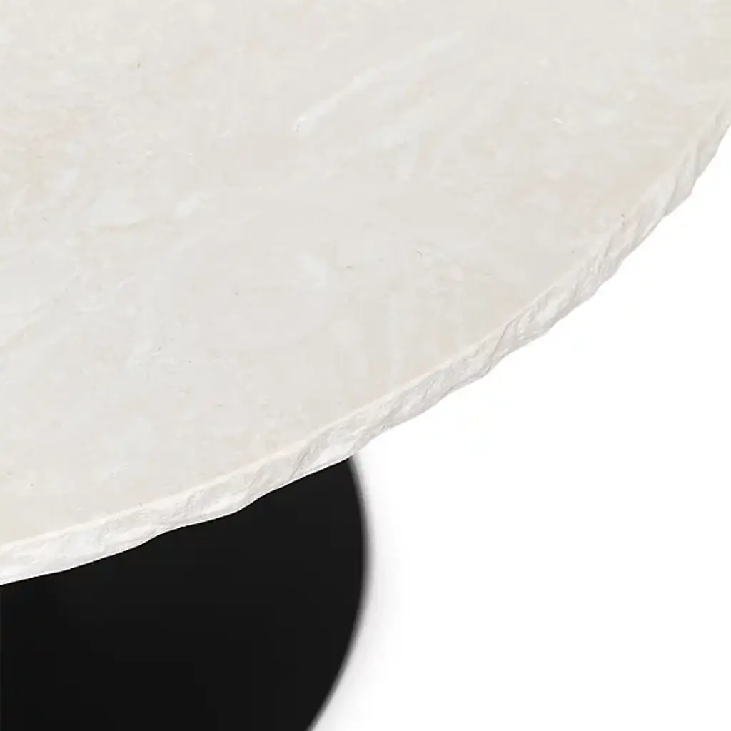 The Mineral Dining Table Ferm Living blends ruggedness and refinement. This dining table features a Bianco Curia marble tabletop that has been meticulously hand-chiseled, showcasing excellent craftsmanship. The round top has a broken-edged look, bringing character to your living space. A powder-coated galvanized steel column is durably made and nicely balanced by a round baseplate. Place this versatile dining table in a variety of contemporary settings to revamp your décor.