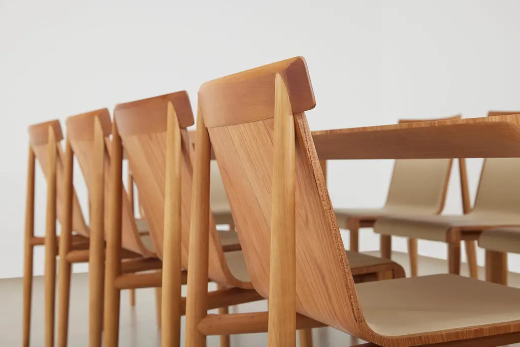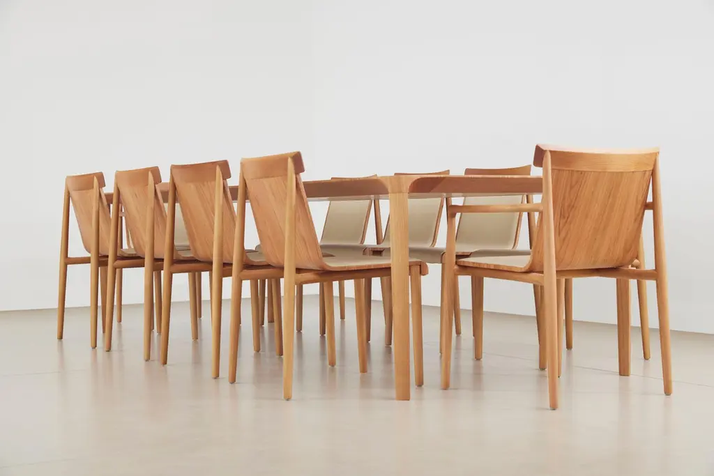 Our Evo collection is based in the harmonic fusion between geometrical forms in a modern interpretation of wood archetypes, combining a rational defined outcome with the warmth of organic shapes in a fluid continuous outline that merges the elements in a pleasant graphical solution, that invites to seat and enjoy the living and dining areas. A design style that can be defined as modern Brazilian design with a Scandinavian twist, interpreted in Minimalist contemporary key and a touch of retro warmth typical from the wood work construction. All elements of the EVO pieces are precisely engineered to input hardwood blocks to a Hybrid 5-Axis CNC milling machine that carves and sculpt the wood with precision to achieve minimal thicknesses, transitions between elements and superb definition, every piece of this collection items passes in a array of manual crafting processes until a they are manually assemble together to create the final product, that contains precise and tangent junctions between pieces that discard the need of metal pieces of any kind, the combination of this attributes give life to a sturdy and durable object that will live thru out many generations to come.Together with the design style and engineering we dedicated tremendous time to balance the ergonomics, focusing on the user and giving the comfort it needs. The back portion of the chairs and stools fully support the user weight embracing the body back thru a generous arch implemented in the wood sculpting process. Expect a stunning, elegant object, designed with passion in a project that evolved with our studio story, the tables are manufactured in solid wood in all the perimeter, this pieces are carved from blocks as the other pieces that compose the collection. Within the legs we use a metal reinforcement that is mounted in the component itself, so hidden inside a steel bar will provide more support, the wooden leg is fix to a carved attachment and the metal portion is mounted in a steel frame in the top. For transportation reasons the table comes unassembled, and have to be assembled, white glove with assembly can be quoted to facilitate the process. The tables are available in the following mesures: 1- 43.31in W x 86.61 L 2- 43.31in W x 94.49 L3- 43.31in W x 106.3 L4- 43.31in W x 118.11in L (this listing, it will accommodate 12 seats) Stools and chairs are available with upholstered seatings, or all wood. This item is possible to customise in seat hight, as an example seat hight in 26inches (66cm) as counter seat hight. We use only high quality, premium woods, the, tonality and veins drawing vary from item to item, been a living material. COM and COL are available for the seating portion for the chairs and stools.