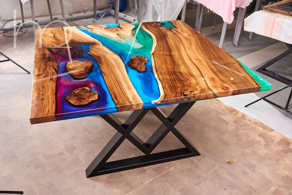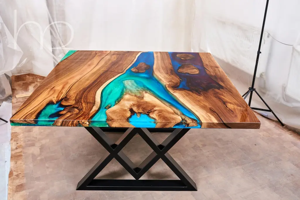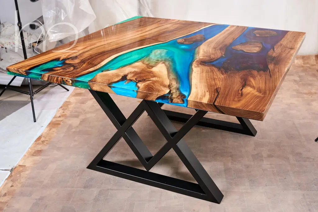 Sometimes we go through difficult circumstances. But isn't it a miracle that as time passes, we find something beautiful in the difficult times? When we realize that on the difficult path we have seen the stars, we have passed seas and oceans, we have seen the northern lights, sunrises and sunsets, doldrums and storms, we have given up and refused to give up and become seekers and finders. After all, what we are and what we like about us at the moment is the result of the difficulties we have gone through. I want every difficult path and every difficulty to turn into beautiful memories and juicy fruits in its time. The table is made of really old broad 250 year walnut and epoxy in beautiful colors. Coated with a glossy hard lacquer for durability. Plished for hours to look perfect. Handcrafted in our workshop. Made with passion. Each table is made of selected slabs of different woods with character. We spend a lot of time selecting 100% of your slabs that will suit your heart and interior. The Italian resin that is used for pouring is the best in the world. It does not turn yellow, does not become cloudy from time to time and lasts forever. All finishes are also from the best Italian brands. All of them are as hard as possible to give the table moisture resistance, resistance to mechanical damage and scratches. Also, all tables use the technology of pouring wood from above and below with a layer of epoxy resin, which makes the product ever-living and also completely waterproof. Also tables are completed with a protective film which will keep your table virgin during the first years of use. I just want you to enjoy your table as a real work of art in which we have invested part of our soul, experiences and efforts.