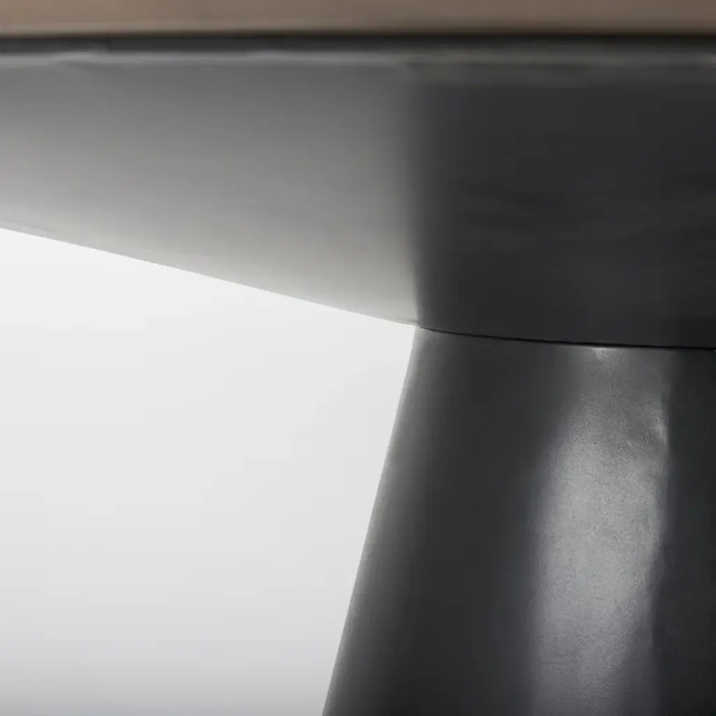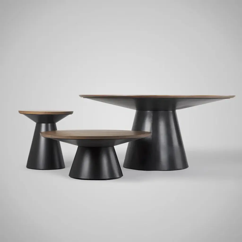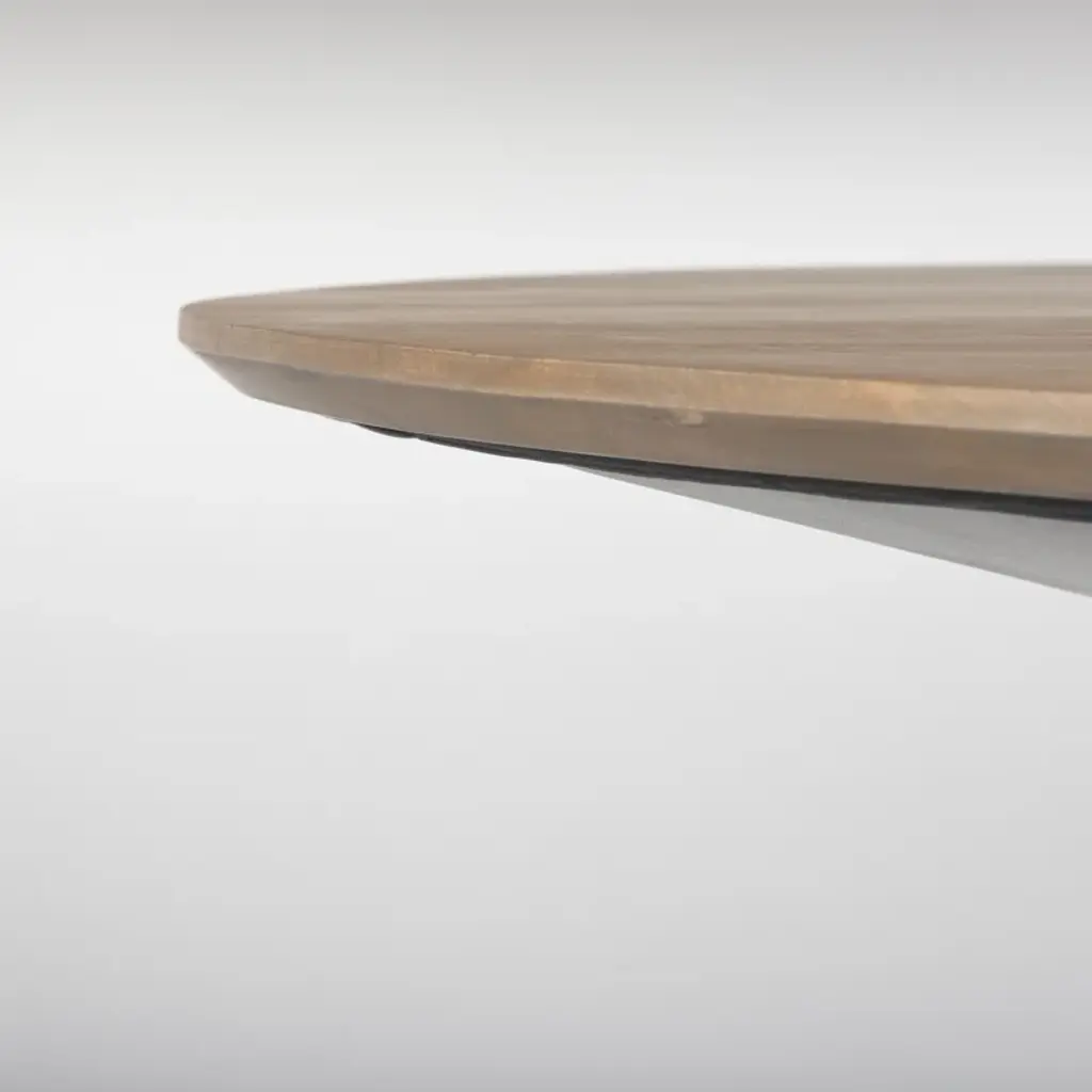 Fall in love with the beautiful chunkiness of the Mitchell Dining Table. This rotund, contemporary table offers a blend of solid mango wood and iron. The sleek, medium brown wooden top has been expertly finished to show off its textured grain, whilst the conical pedestal base comes in a complementary and contrasting black iron finish – so very stylish. This dining table pairs perfectly with the Mitchell Coffee Table and Side Table.