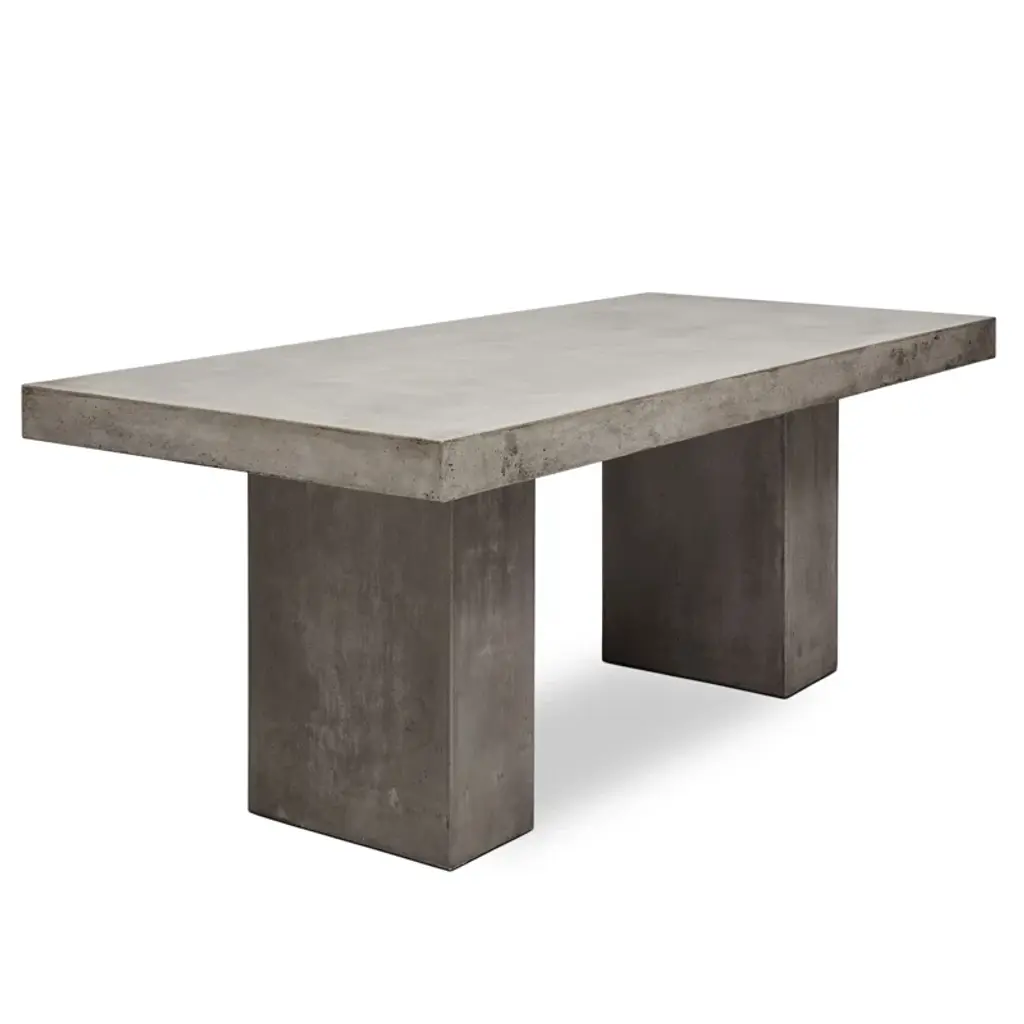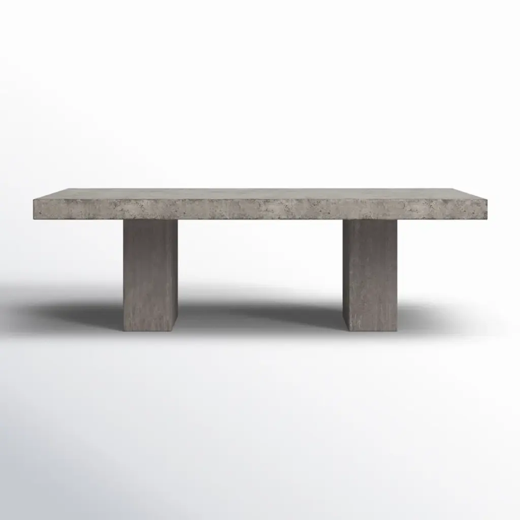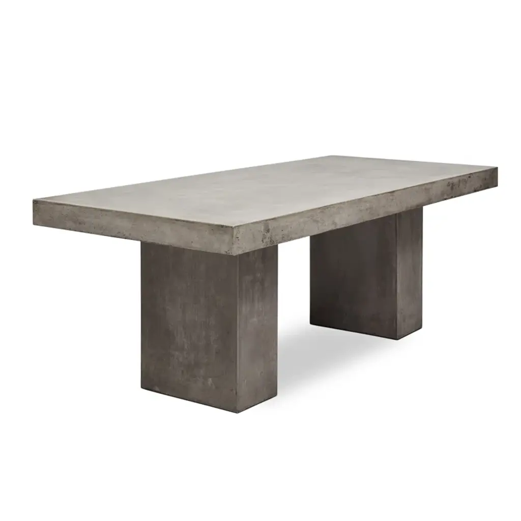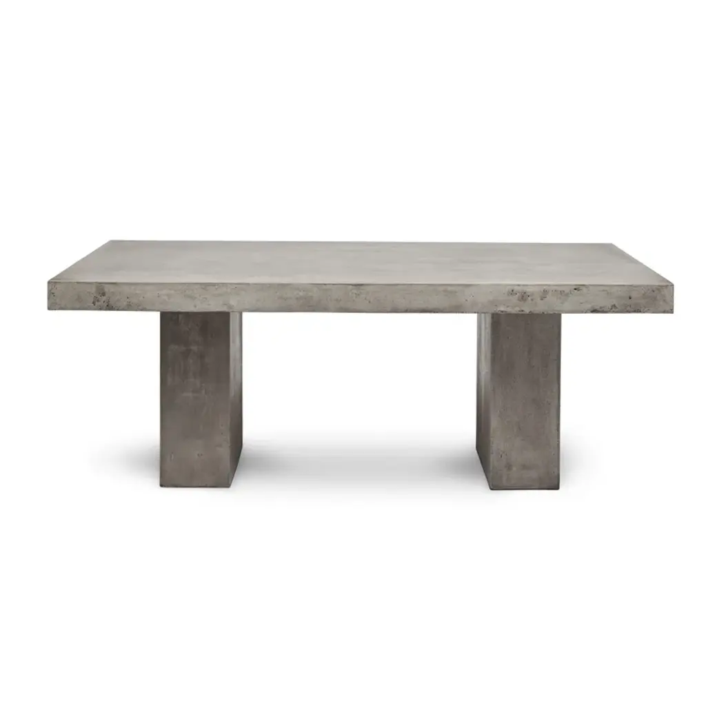 With chunky proportions + a finish, this table brings a bold industrial-inspired look to your indoor or outdoor dining area. It’s built from fiber-reinforced concrete that’s sealed and waxed to prevent staining. Seats eight people – ask some of them to help you assemble it first.