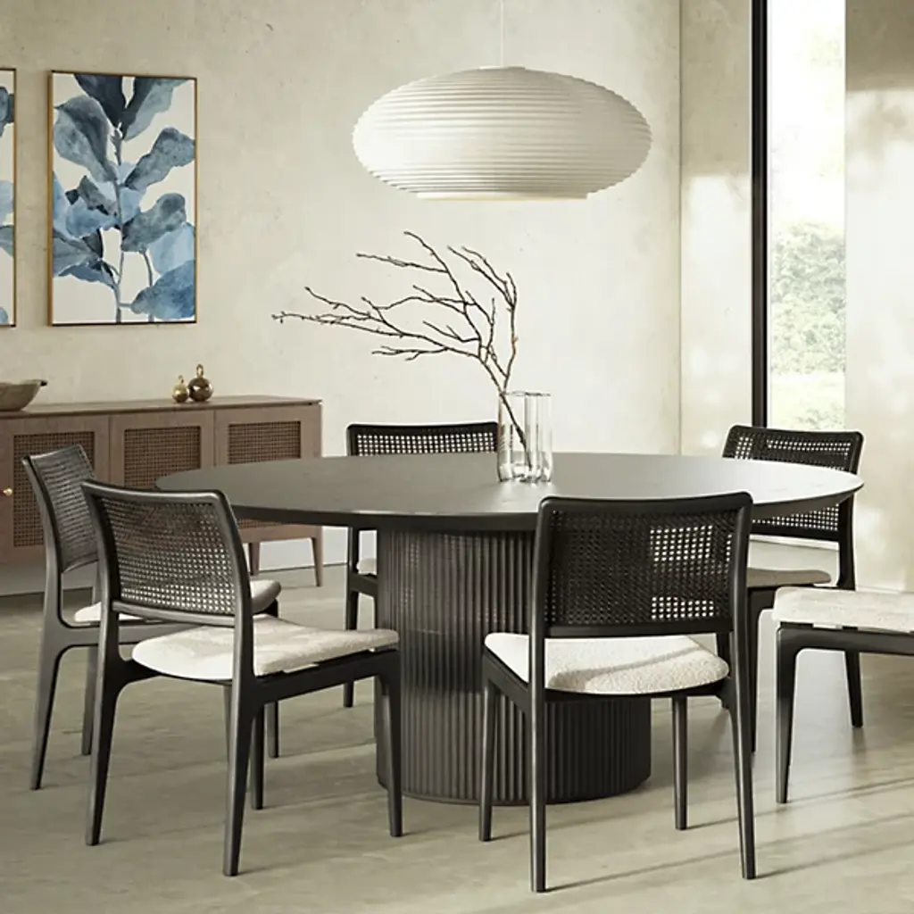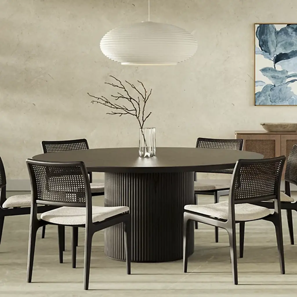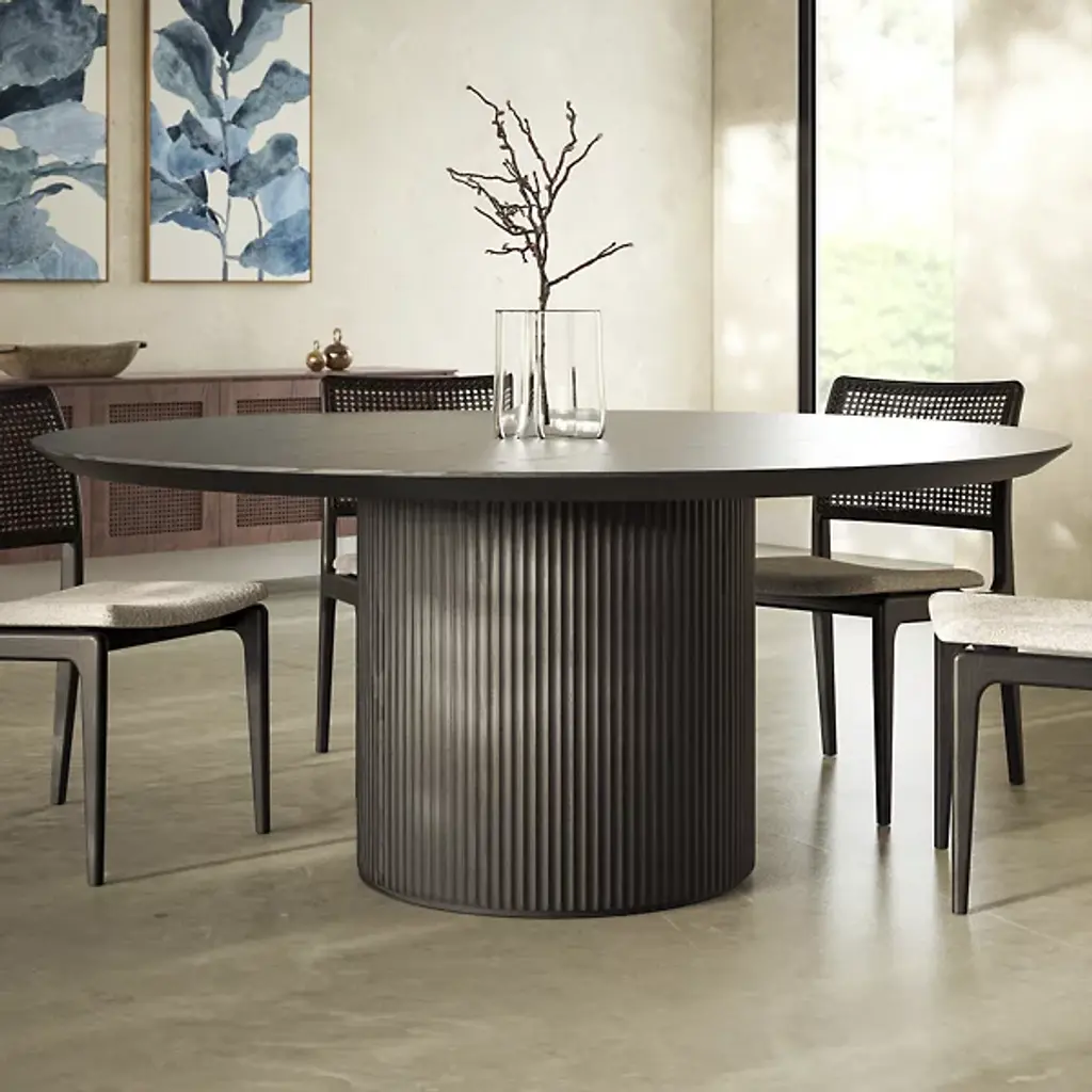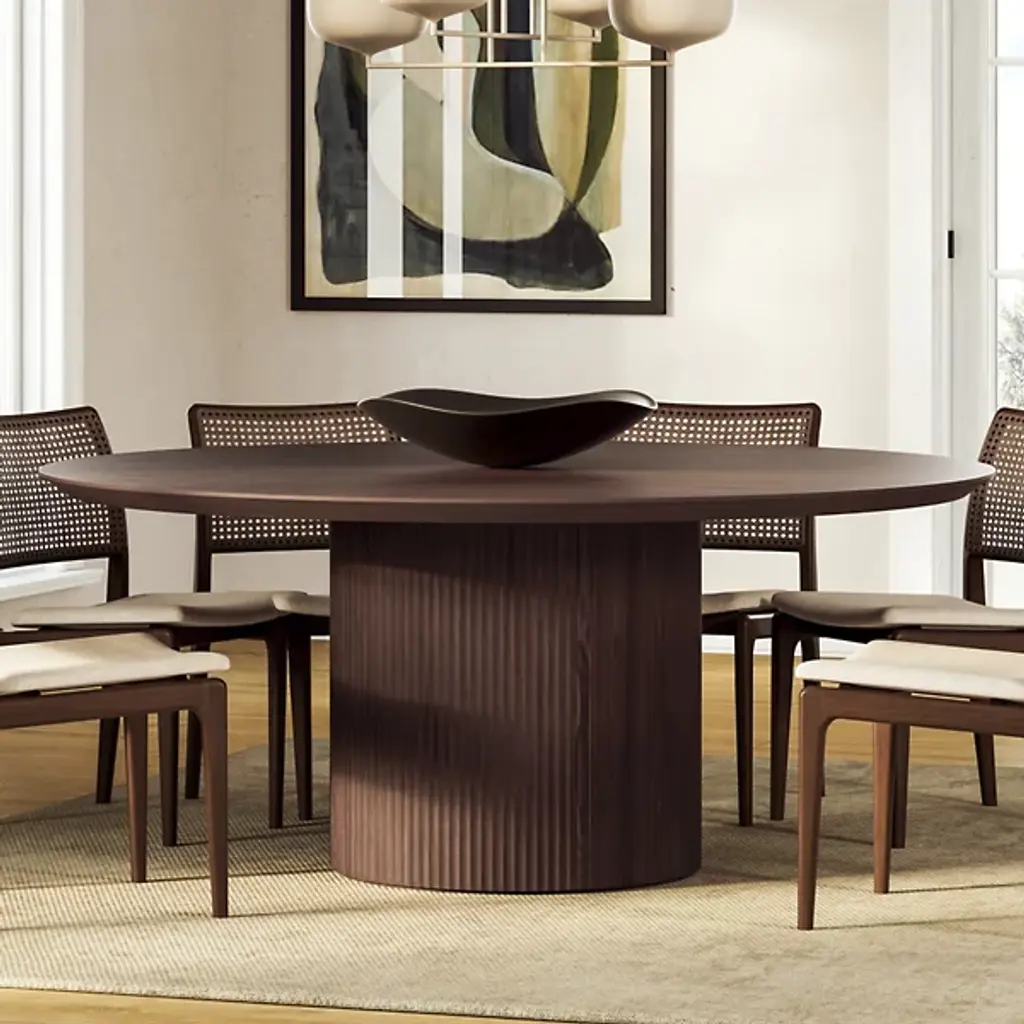 Welcome your dinner guests to a simple yet beautiful and inviting dining space featuring the Urbia Modern Brazilian Atenas Round Dining Table. This round dining table features a clean and elegant design with its fluted solid Tauari wood pedestal base and veneer top. Both a functional piece of furniture and an aesthetically pleasing piece of home decor, the Athenas Round Dining Table is just the centerpiece you need for your dining room.
