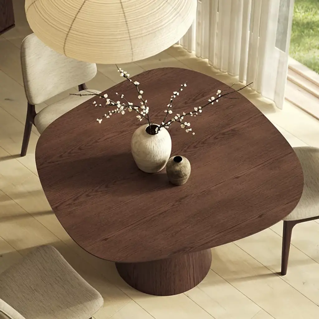 The Modern Brazilian Bahia Dining Table by Urbia embodies minimalist design and offers a sleek profile that complements any dining area. With its playful, organic shape and elevated simplicity, this table is perfect for modern, uncluttered interiors. Its understated elegance makes it a versatile addition to dining rooms, living rooms, or entryways. Known for its unique grain patterning, the table adds an element of visual interest to your space, making it both functional furniture and a sculptural piece.