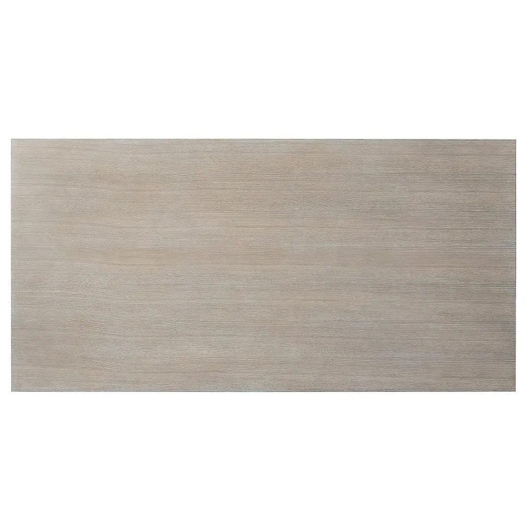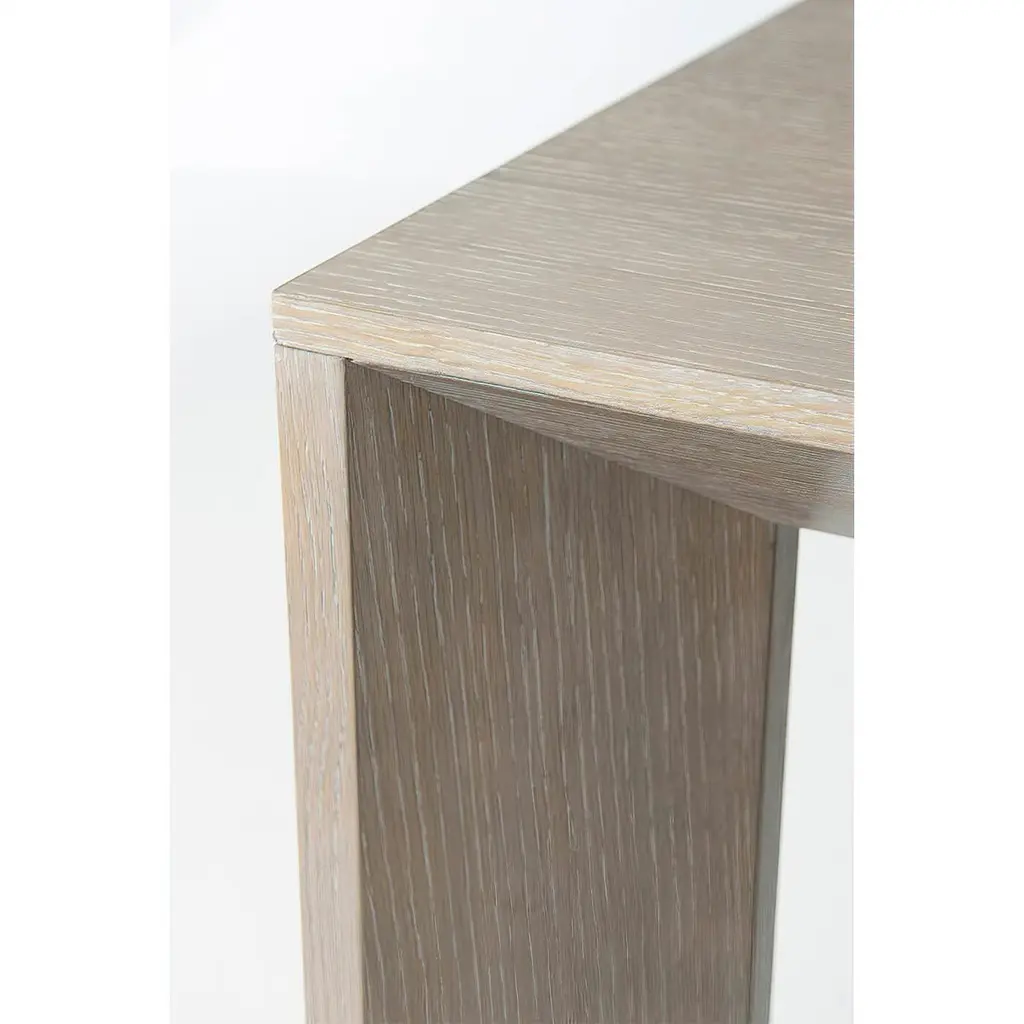 A modern cerused oak dining table to seat 8 or more people. A sleek clean-lined design fitting well within today's modern decor kitchen or dining room. A highly sought-after style with a modern Minimalist look.Dimensions: 84" W x 42" D x 30" H.