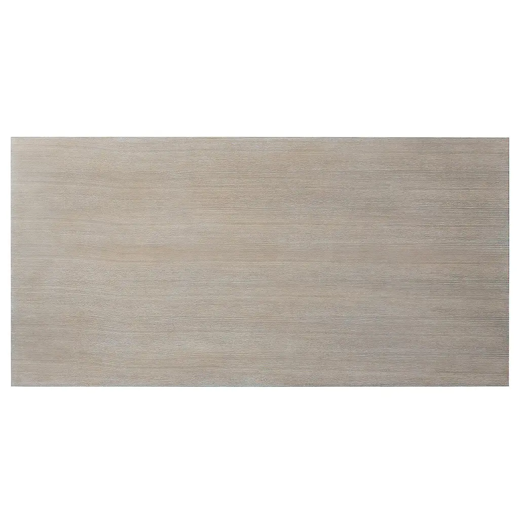 A modern cerused oak dining table to seat 8 or more people. A sleek clean-lined design fitting well within today's modern decor kitchen or dining room. A highly sought-after style with a modern minimalist look. Dimensions: 84" W x 42" D x 30" H