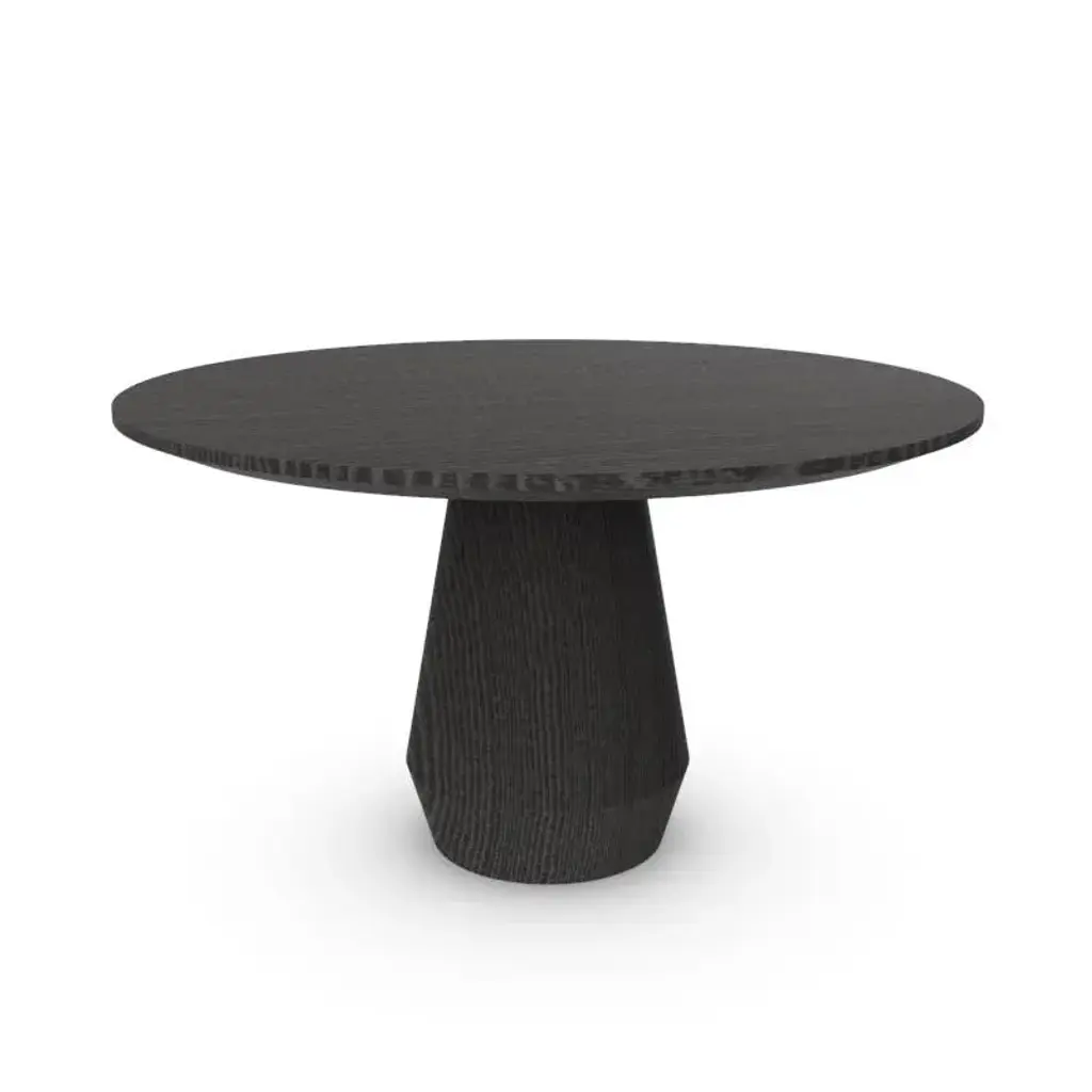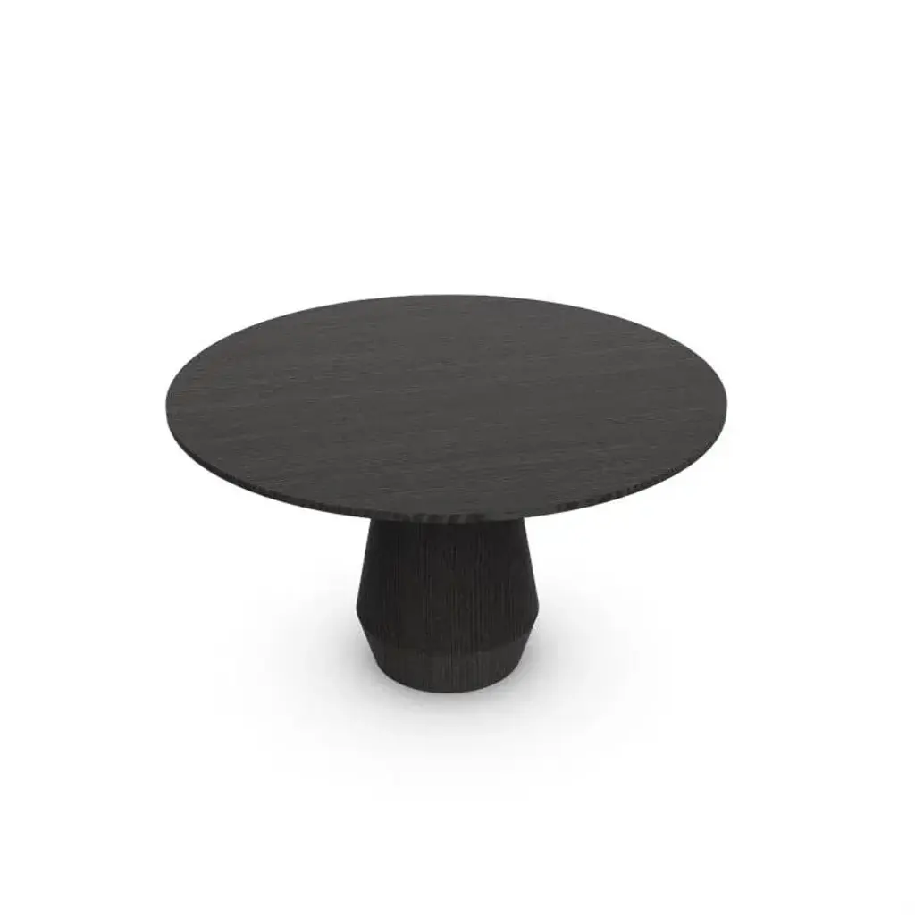 It’s as if a huge block of wood was turned on a massive lathe, making it look like its revolved shape was created by a single gesture. This wooden table will not only look beautiful but will also have an incredible feel to it as it is finished with a matte varnish that will cast amazing reflections and be soft to the touch.
