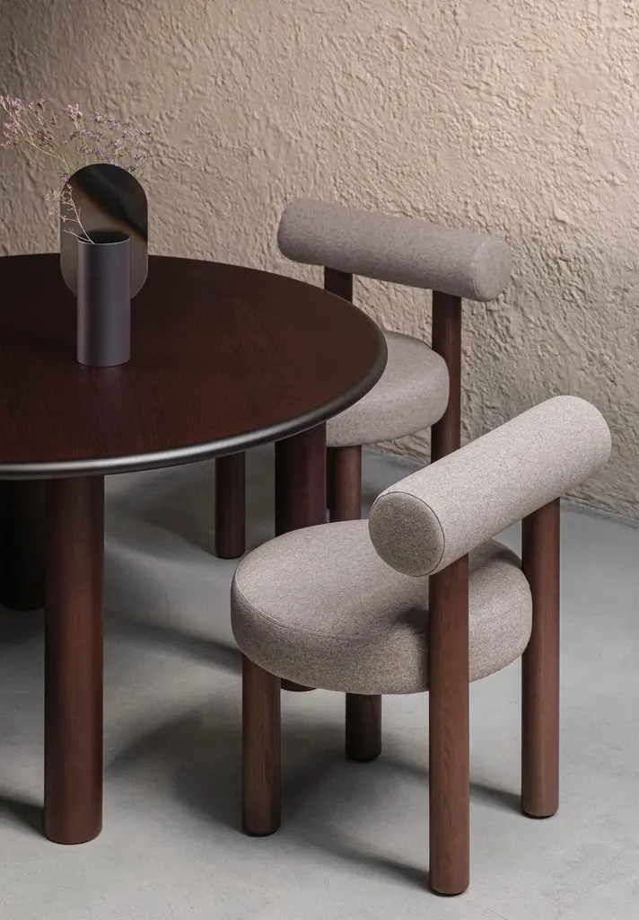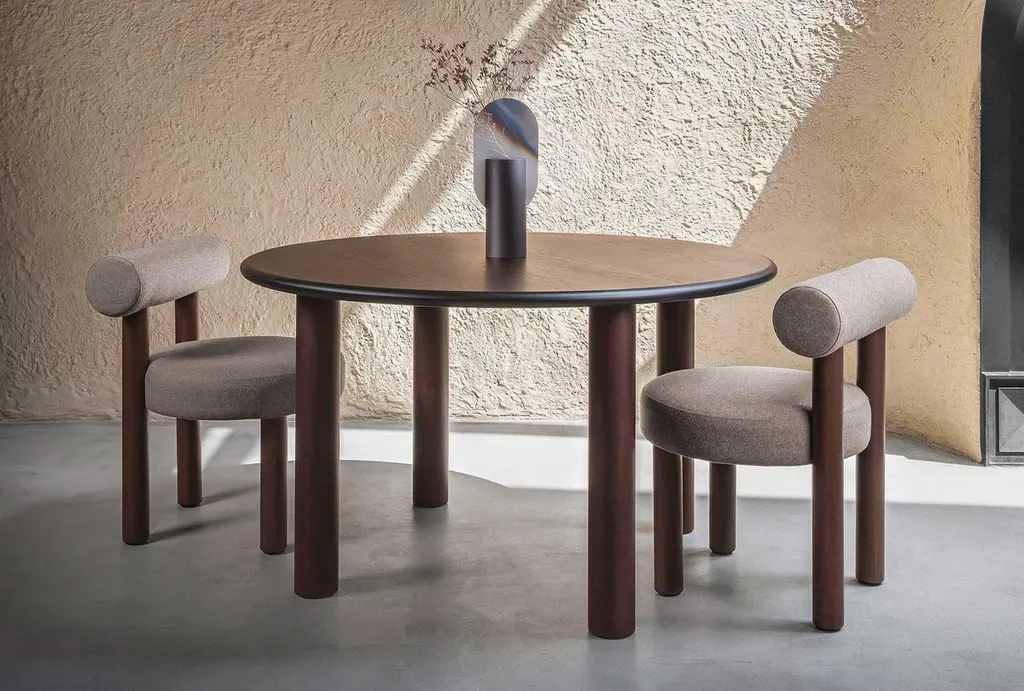 Dining round table 'PAUL' by NoomDesigner: Kateryna SokolovaColors: Black stained, Brown stained, NaturalModel shown in picture: Natural ashwood Dimensions: H 71 cm, Ø 180 cmThe table's design is a "tribute" to the influential German architect, illustrator, and furniture designer Bruno Paul, who is recognized for his Typenmöbel, standardized furniture that was simple, practical, and elegant.At NOOM we espouse the same progressive aesthetic and functional approach to design, thus the "Paul" table with its restrained appearance is about honoring pragmatic modernism and celebrating comfort, cleanliness, and natural materials.Conscientiously designed and carefully manufactured "Paul" table with its a very straightforward, but welcoming appearance was conceived as the universal table to suit any interior style.Conscientiously designed and carefully manufac- tured “Paul” table with its very straightforward but welcoming appearance was conceived as the universal table to suit any interior style.“Paul” was designed to be the centerpiece of the interi- or, a natural gathering point in a home, cafe, or restaurant.