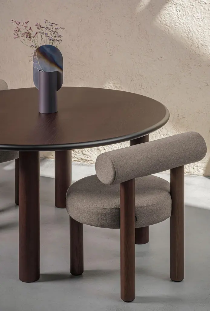 Dining round table 'PAUL' by NoomDesigner: Kateryna SokolovaColors: black stained, brown stained, NaturalModel shown in picture: natural ashwood Dimensions: H 71 cm, Ø 130 cmThe table's design is a "tribute" to the influential German architect, illustrator, and furniture designer Bruno Paul, who is recognized for his Typenmöbel, standardized furniture that was simple, practical, and elegant.At NOOM we espouse the same progressive aesthetic and functional approach to design, thus the "Paul" table with its restrained appearance is about honoring pragmatic modernism and celebrating comfort, cleanliness, and natural materials.Conscientiously designed and carefully manufactured "Paul" table with its a very straightforward, but welcoming appearance was conceived as the universal table to suit any interior style.Conscientiously designed and carefully manufac- tured “Paul” table with its very straightforward but welcoming appearance was conceived as the universal table to suit any interior style.“Paul” was designed to be the centerpiece of the interi- or, a natural gathering point in a home, cafe, or restaurant.