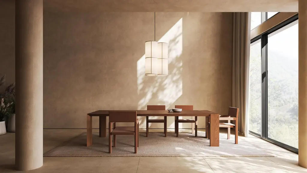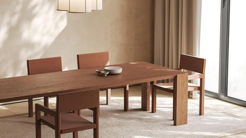 ‘Ispolin’ - a modern dining table with a hidden metal frame inside.This elegant dining table captivates attention with its clean, defined lines. From the outside, no fastenings or frame are visible, but a look underneath reveals the craftsmanship in its construction. All visible parts are meticulously finished.The table is veneered with natural oak and coated with high-quality Italian lacquer. Despite the internal frame, it is also covered with a premium enamel to prevent aging. ‘Ispolin’ possesses exceptional strength due to its construction, yet its design appears sleek and light, thanks to the sharp angles on the tabletop and legs. These angles create a narrow seam between the tabletop and legs, giving the table a monolithic appearance.This dining table was created by designer Alexander Babenko for the company Palo Nero. Alexander works in a contemporary minimalist style, and all his pieces, like those at Palo Nero, are highly refined. Extensive time was dedicated to developing a structure that would be both durable and design-friendly. The team even consulted an institute to calculate load-bearing capacities.The table is manufactured in Ukraine, where the best practices and materials are applied to represent their products internationally.The ‘Ispolin’ dining table was showcased at Feria Hábitat València and Warsaw Home & Contract exhibitions.